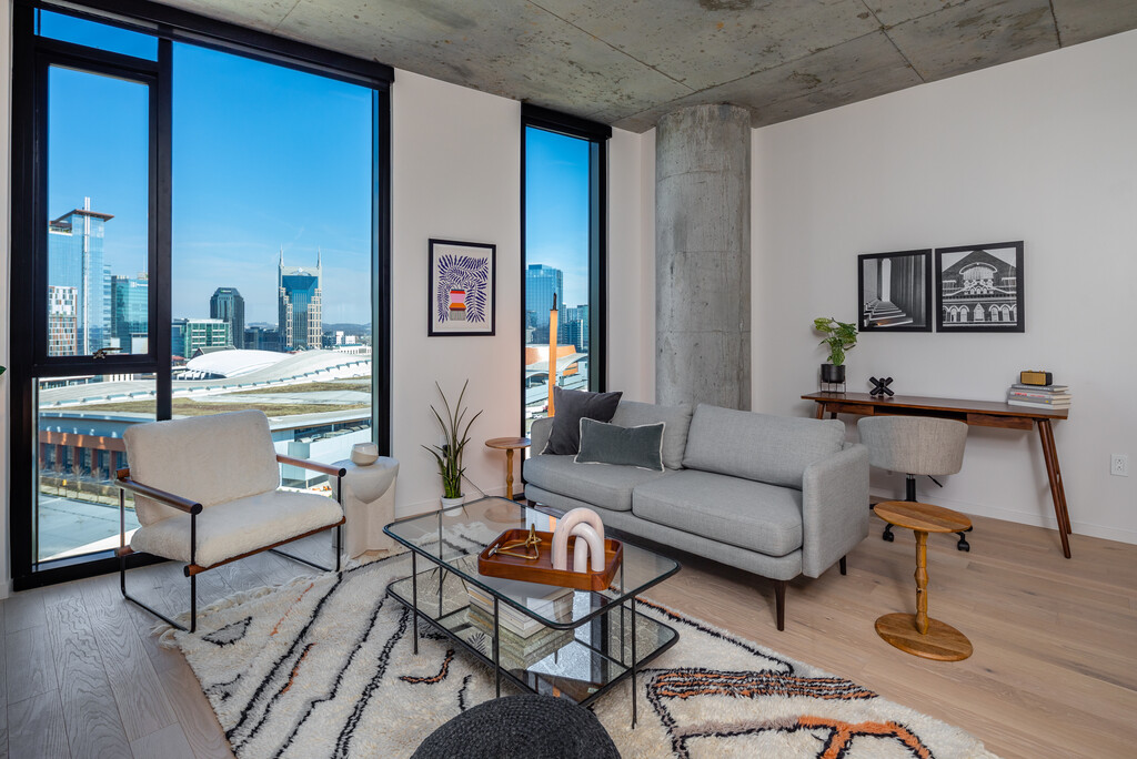 Shining on the Nashville skyline in dark gold and steel, 805 Lea raises rental living to new heights. Come home to a modern living space with sophisticated perks including an expansive amenity deck with a sparkling saltwater pool, state-of-the-art fitness center, ample entertaining spaces, and the Sky Lounge, with sweeping views of the city. It’s all located in the heart of Nashville’s arts, music, food and cultural scene. A new angle on downtown living rises in Nashville’s Station District.