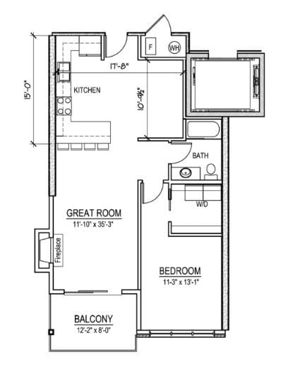 Apartment Model: A-1 Balcony$1,1751 Bedroom, 1 Bath, 800 sq ftAvailable NowFloorplansPhotos![]()