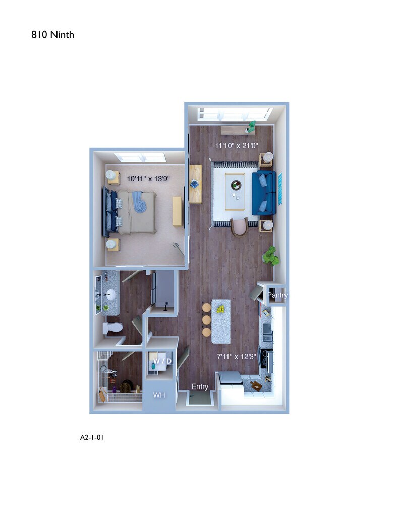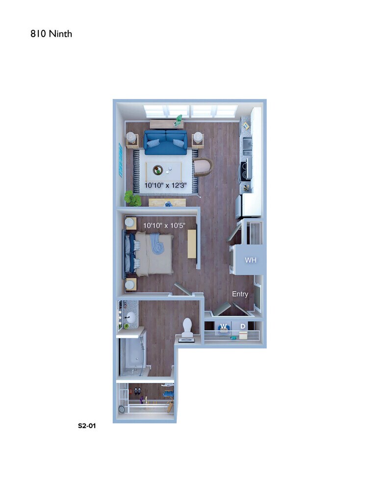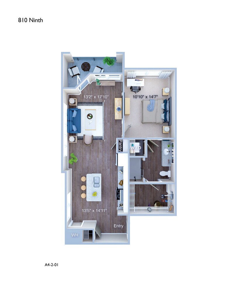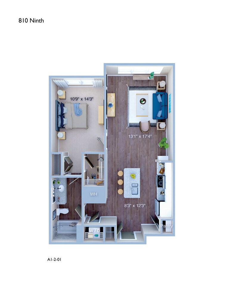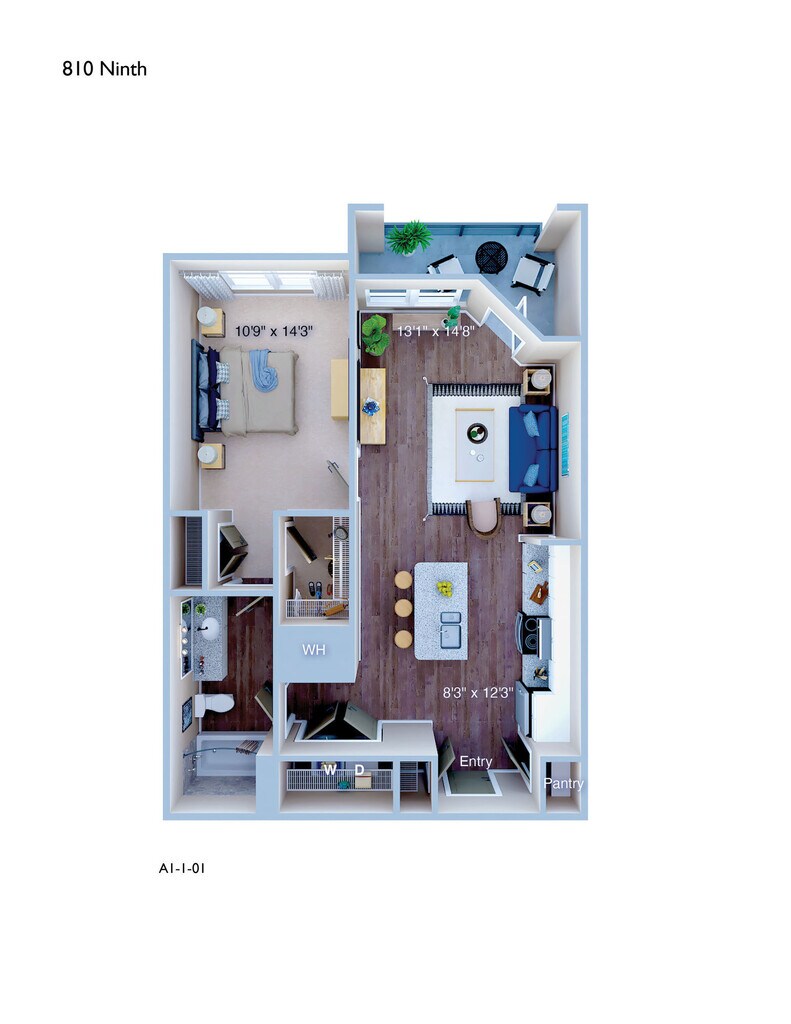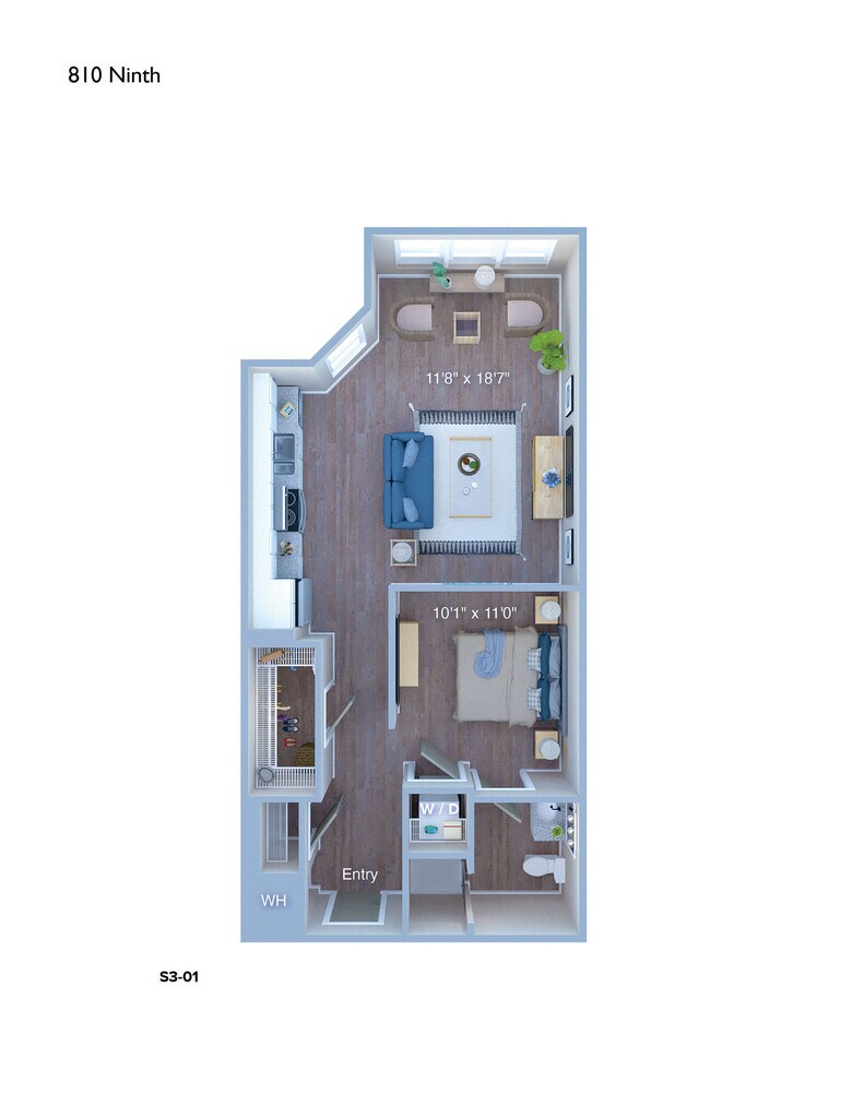 Studio to 3 Bedroom Apartments at 810 Ninth currently range from $1,630 to $2,786