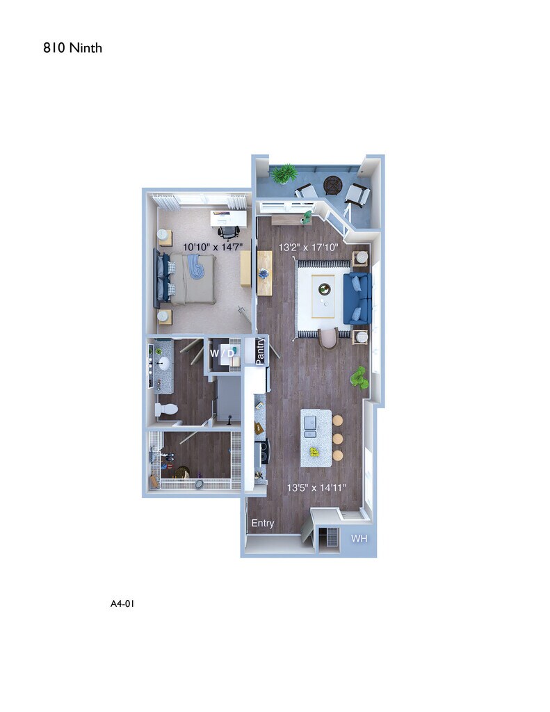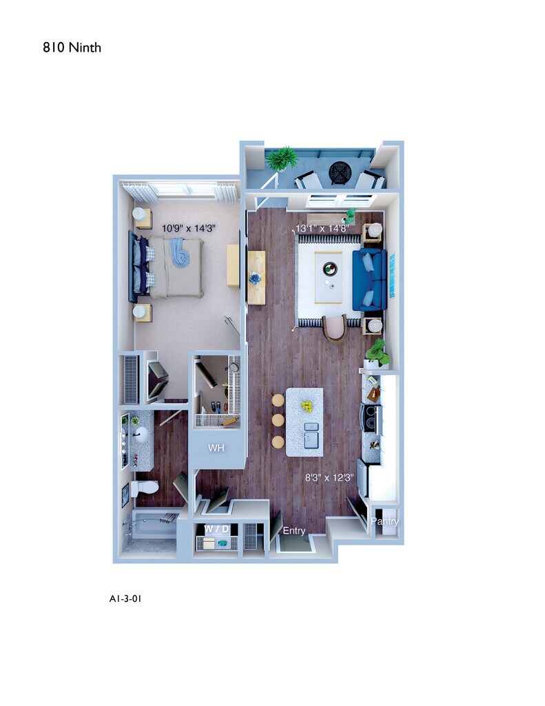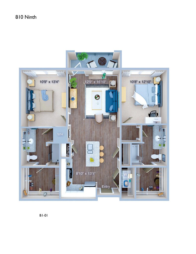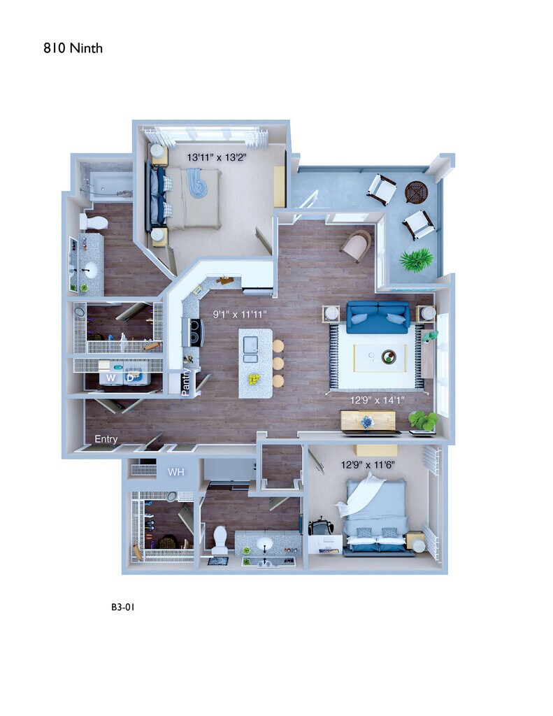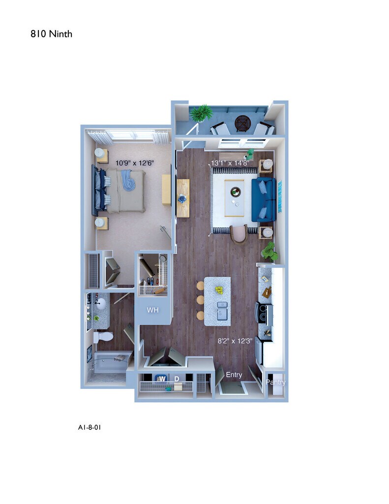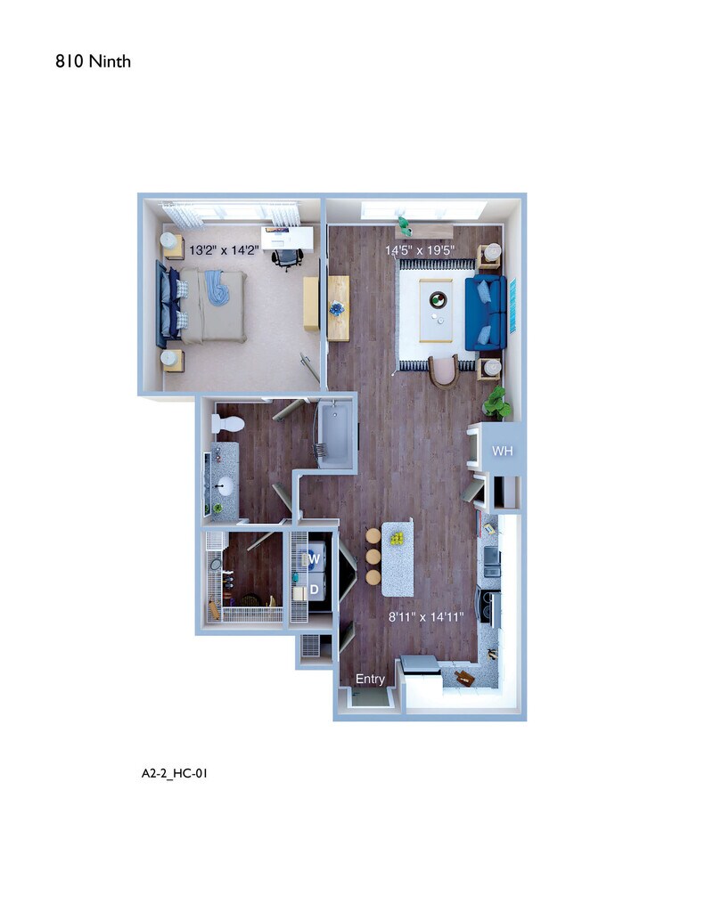 Studio to 3 Bedroom Apartments at 810 Ninth currently range from $1,630 to $2,786