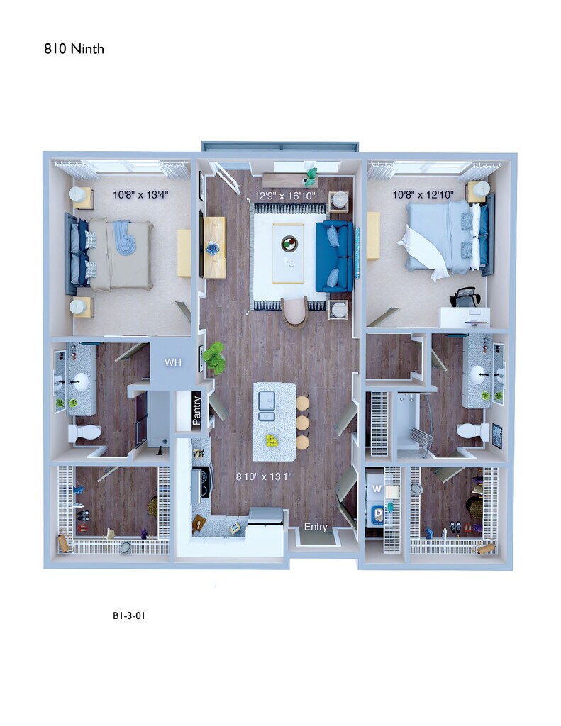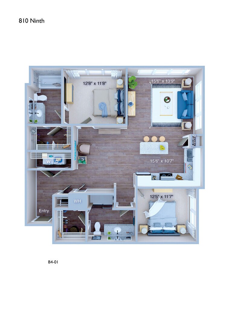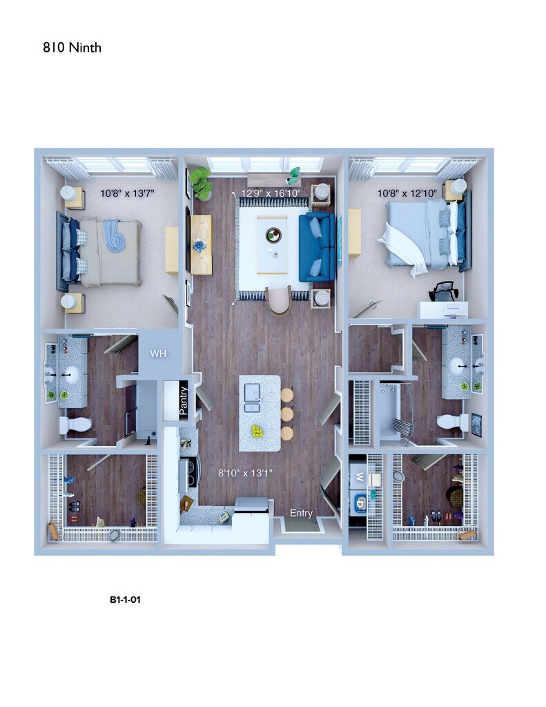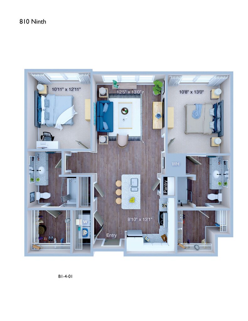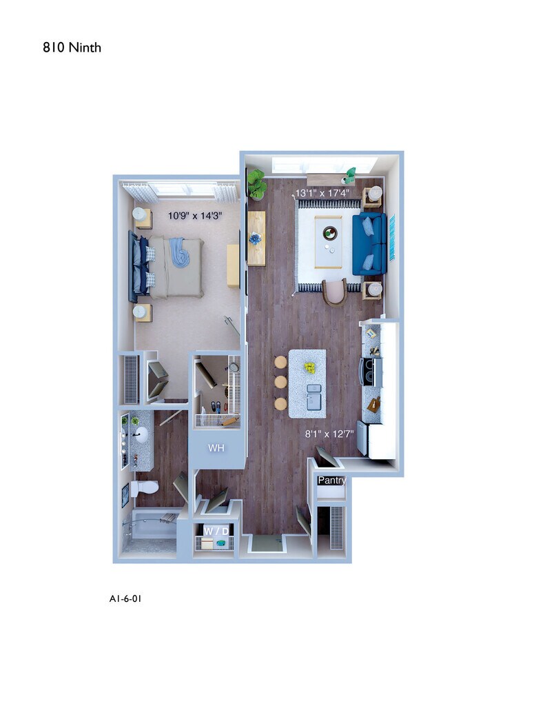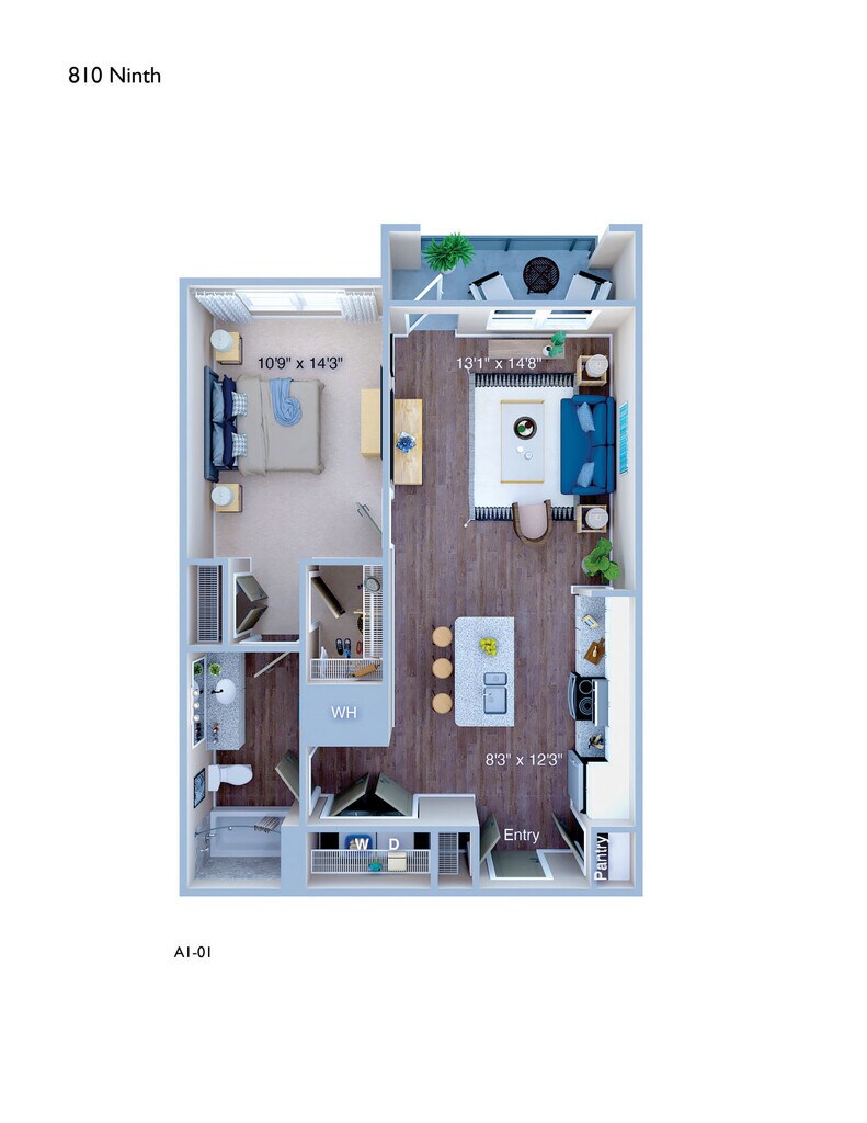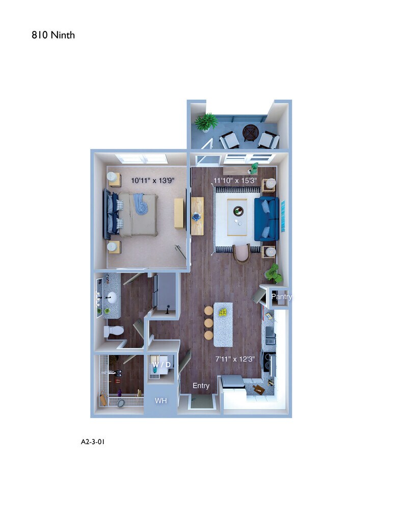 Studio to 3 Bedroom Apartments at 810 Ninth currently range from $1,630 to $2,786