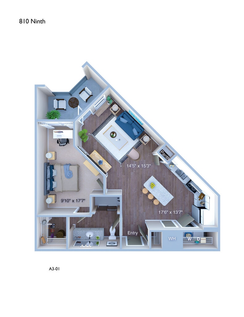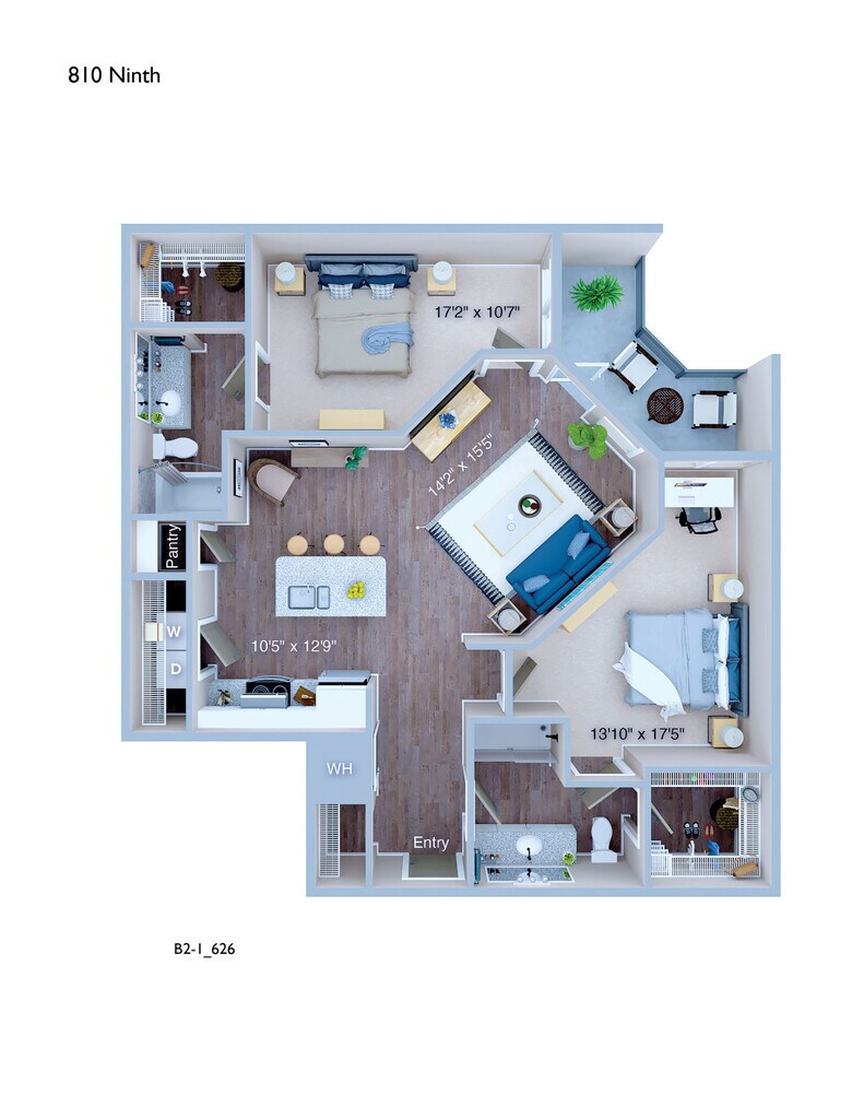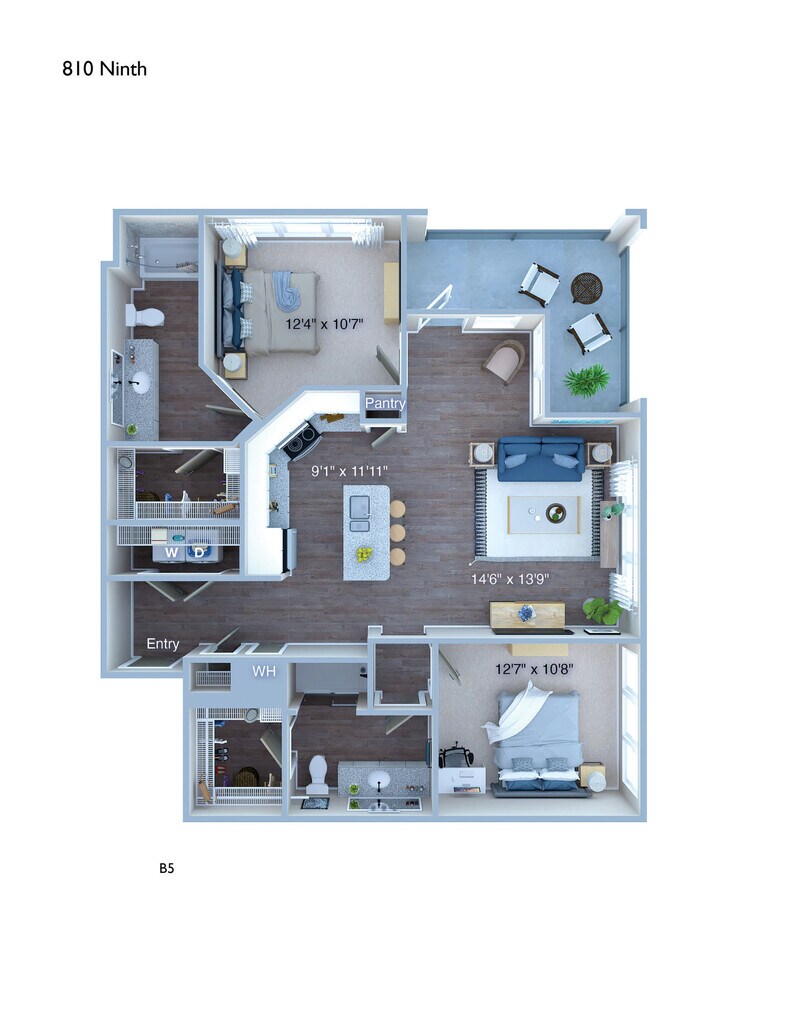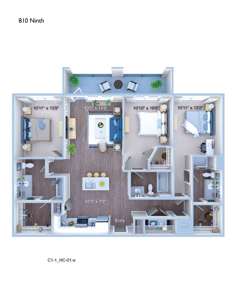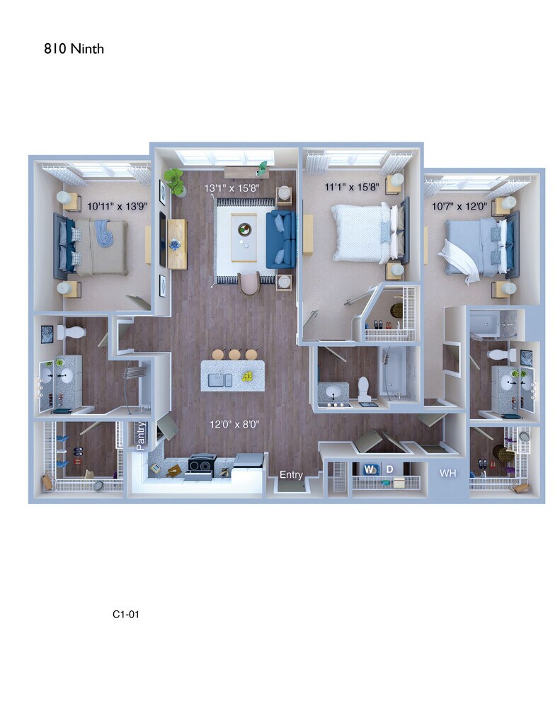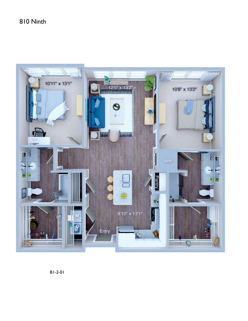 Studio to 3 Bedroom Apartments at 810 Ninth currently range from $1,630 to $2,786