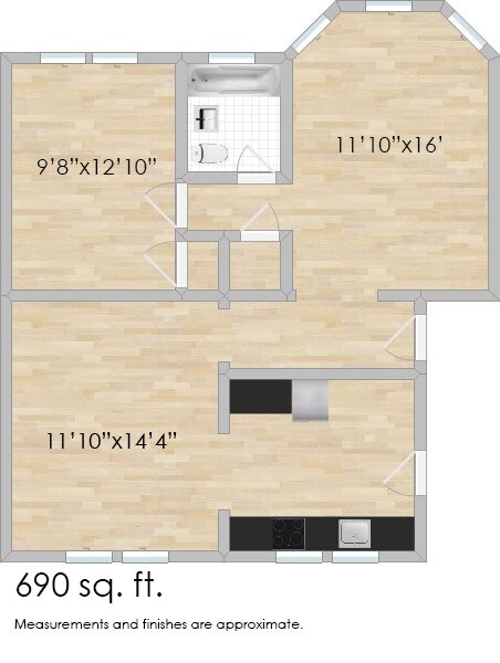 Apartment Model: 816 & 818 S. Austin W1 Bedroom, 1 Bath, 647 sq ftUnavailable![]()
