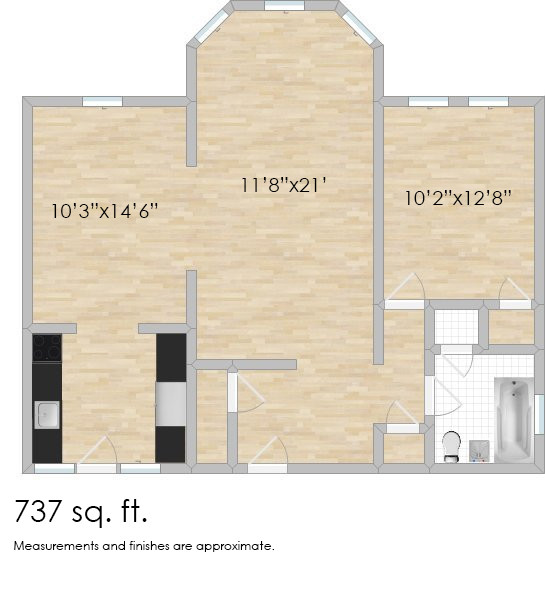 1 Bed, 1 Bath, 737 sq ftModel Gallery