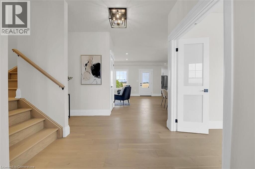 Rent to own option available. Luxury custom home built in 2023. Escape to the country with the convenience of all amenities just a short drive away! Minutes from Hwy 6 & Hwy 403,with quick access to shopping,restaurants and Hamilton Airport. The main floor features an open concept layout with a combination of engineered hardwood and tile floors,and an abundance of natural light. The den is situated at the entry of the home and provides a great work from home space. The kitchen offers quartz counters and backsplash,stainless steel appliances and a large island that is great for entertaining. There is also an upper level family room which is ideal for large and growing families. The stunning primary suite features a lavish ensuite with freestanding soaker tub and separate shower plus an enormous walk in closet. The upper level hosts 3 additional bedrooms,main 5 piece bath and a convenient laundry room. Enjoy the outdoors on your covered rear porch complete with scenic farm views. (id:52069) ID#: 1982687