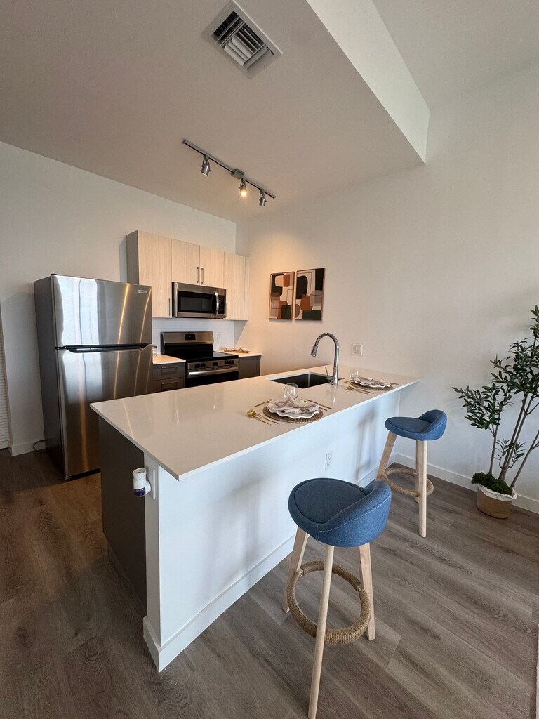 1 Bedroom / 1 Bath Apartment in Edgewater Spacious and filled with natural light, this luxury apartment features a partial view of Biscayne Bay and a modern design perfect for your lifestyle. Located in one of Edgewater’s premier buildings, you’ll enjoy resort-style amenities including a 9th-floor pool with stunning views, a fully equipped gym, coworking area, theater, and more. Limited-time offer: One month free!