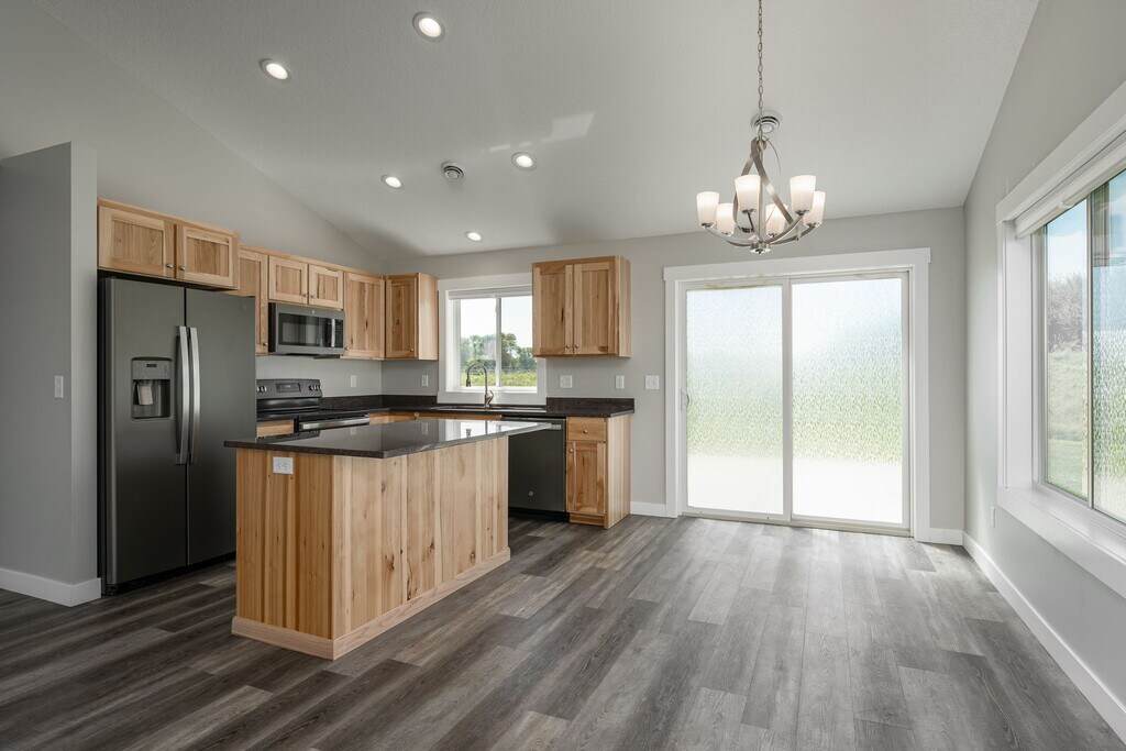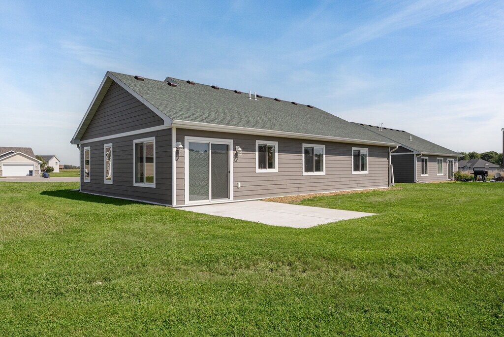 New home in a quiet country setting. Located in Arlington, the heart of Sibley County just one hour west of Minneapolis/St. Paul, Arlington Meadows offers the style and elegance of the big city with the peace and comfort of small-town living. This newly constructed 2 bedroom, 2 bath home offers the best of both worlds. An open concept with south and west exposure provides an abundance of natural light and beautiful finishes throughout. Large eat-in kitchen with brand new everything! Flawless granite countertops, custom cabinetry, farmhouse sink, desired center island/breakfast bar, side by side refrigerator, stove, microwave and dishwasher. From the dining room you have a seven-ft patio door to the backyard. Enjoy gorgeous views of nature and our breathtaking Minnesota skies while sitting on your paved patio sipping coffee. The entire home offers luxury vinyl plank flooring throughout. Cozy laundry room complete with new washer, dryer and ample storge space. Cental air conditioning and heat provide the perfect temperature no matter the season. Private master suite with walk-in closet. Spacious insulated garage for all of your tools or weekend toys. Be impressed with the modern exterior and curb appeal as the siding and landscaping are all stunning.