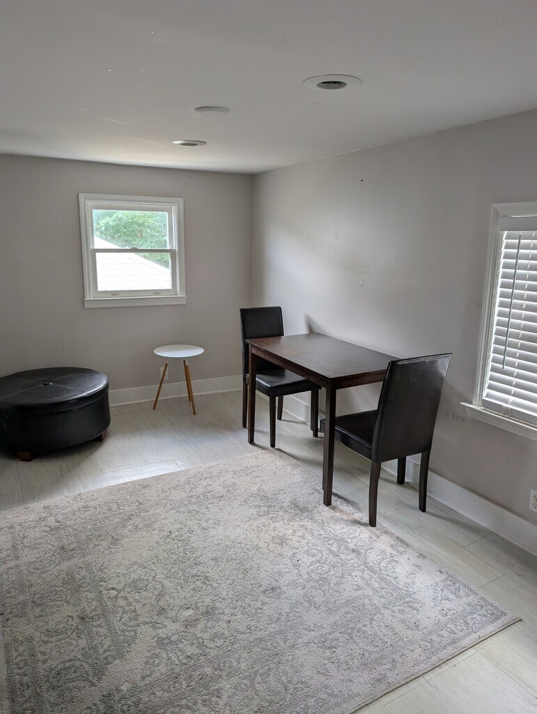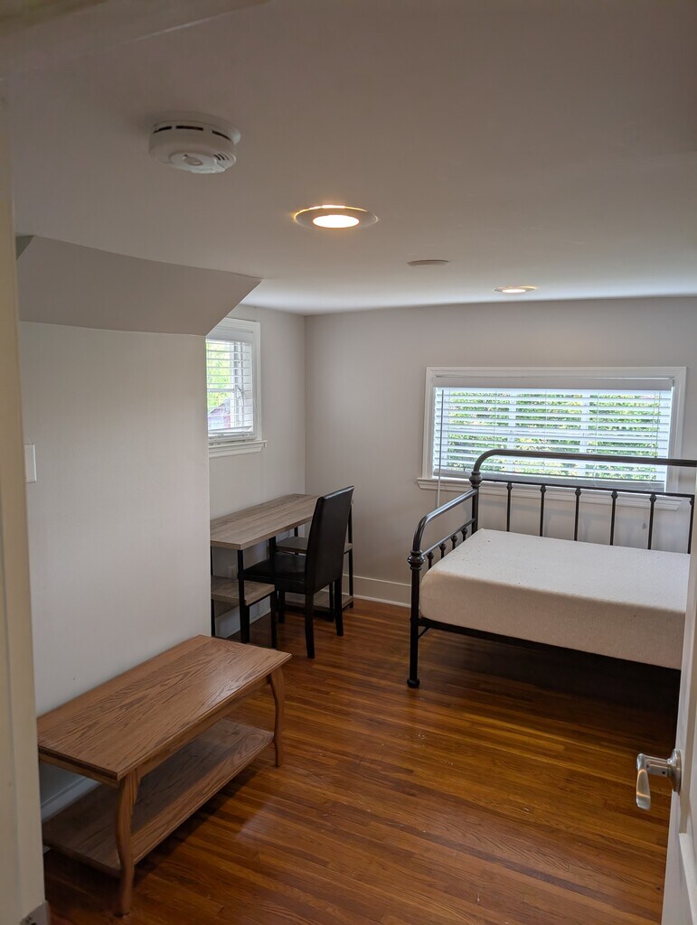 This historic home has been renovated and now offers multiple options for those looking to be close to UTC, Erlanger, or downtown Chattanooga. Inside you'll find original hardwood floors and high ceilings. All units are furnished for your convenience and include all utilities, wifi, laundry, and parking in the monthly rent -- no additional fees or gotchas. Unit 201 is a 4br/2ba apartment wherein the 4 bedrooms are leased independently -- you are not on the hook for your roommates' rent, though you do share a kitchen and two bathrooms with them. Rooms A and B, at the front of the house, are a bit larger and priced accordingly, but all four rooms have the same furnishings and amenities.