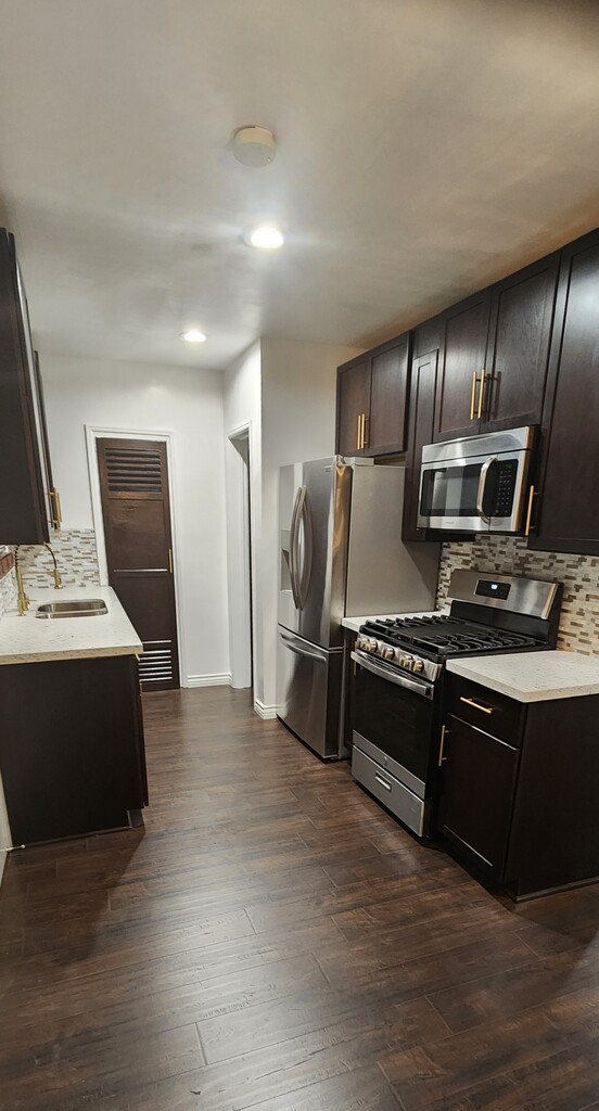 Newly Renovated Upstairs 1bd Located in a 4 Plex, One Mile from Sofi Stadum and Kia Forum. 1Bd Unit, New Dual Pane Windows, Laminate Wood Flooring, Faux Wooden Blinds, Recessed Lightning, Java Shaker Cabinets with Brass Hardware, Quartz Countertops, Undermount Kitchen Sink with Brass Kitchen Faucet, Glass, Stone & Metal Backsplash, New Stainless Steel Kitchen Appliances including French Style Stainless Steel Refrigerator, Dishwasher, 5 Burner Range, Over the Range Microwave, AC Unit. Custom Tile Bathroom with Glass Shower Door. Walk-in Closet in Bedroom, Additional large Closet in Hallway along with Linen Closet. The Unit comes with 2 Parking Spaces- 1-Single Car Enclosed Garage with One Additional Parking Space. Shared Gated Lighted Backyard with Patio Tables, Chairs and BBQ Grille. Move-in is First Month Rent Plus Security Deposit. Security Deposit is $2000.00 based on Credit