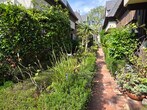 Charming English Tudor style Townhouse with 2 bedrooms & 2.5 baths, located in a quiet, intimate 8-unit complex and completely remodeled in 2018. This front unit has tasteful finishes and lots of attention to detail. The downstairs space has wood-look tiled flooring and a gorgeous cook's kitchen w/ stainless steel appliances, engineered stone counter tops and an amazing amount of cabinets. Also downstairs, a convenient powder room & a laundry closet with Euro-style washer/dryer. Sliding glass doors lead to a private patio with room for outside dining. There is a cozy fireplace in addition to newer central heat & air. Upstairs are 2 bedrooms w/ hardwood flooring and 2 beautiful bathrooms. The engaging primary bedroom has an ensuite bathroom & walk-in closet. There are 2 off-street tandem covered parking spaces w/ storage locker & an additional secured storage space off the patio. Six blocks to the beach and walking distance to shopping and eateries. Don't let this rare find get away!