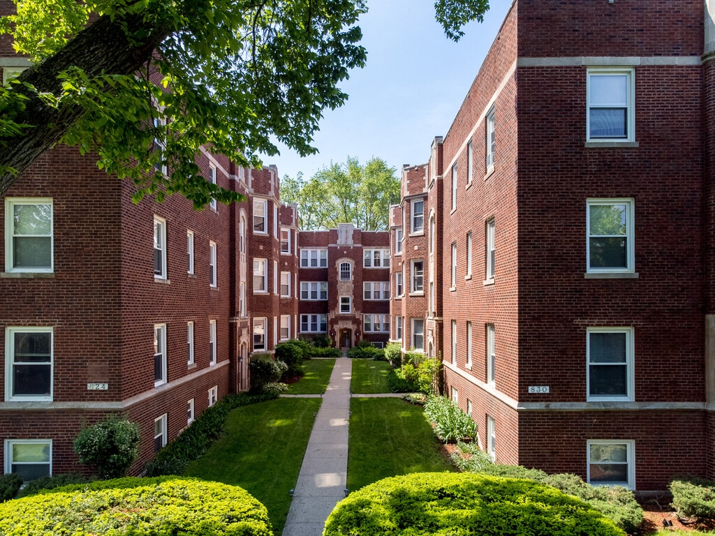 Two blocks from the Metra/CTA stations, shopping, Chicago Avenue, one mile from Northwestern University. Six blocks from the lake. Renovated apartments with new kitchen and bathrooms. Hardwood floors throughout and the original wood crown moldings and stained wood window sills, new double pane windows. Intercom security, building engineer on premise. The best part of the building is and will always be the neighbors. Quiet and considerate neighbors. Trader Joes, Jewel and Blind Faith Café all walkable.