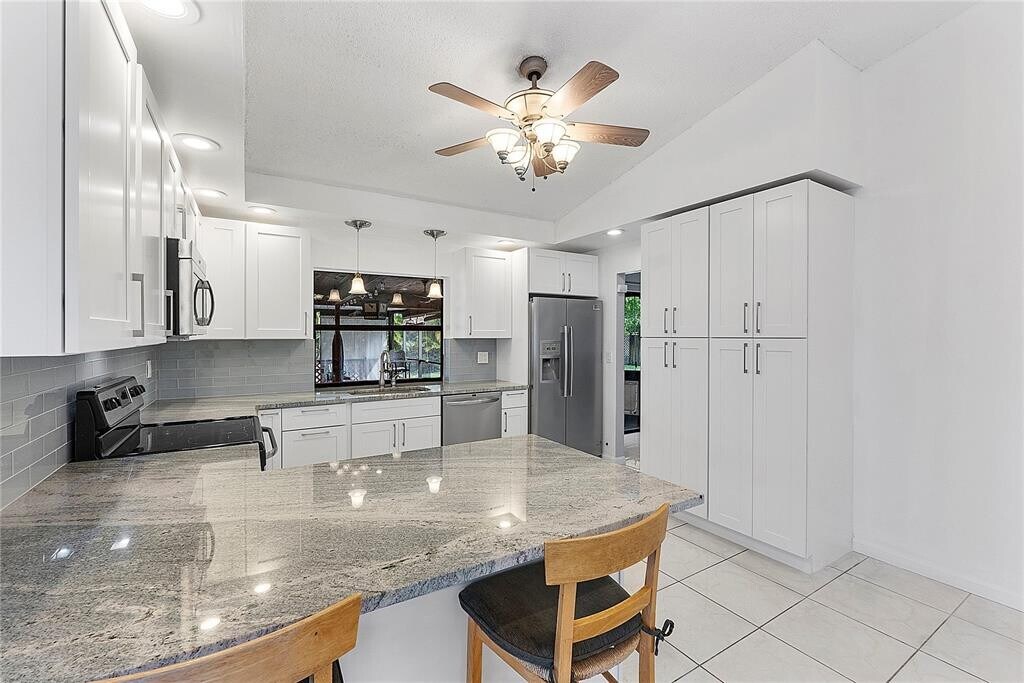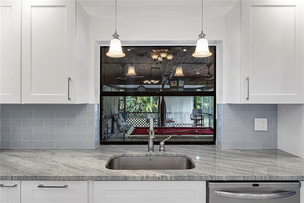 Beautiful 3 Bed 2 Bath Waterfront Pool Home With 2 Car Garage. This Home Features Newly Remodeled Kitchen With Granite Countertops, Subway Tile Backsplash, Stainless Steel Appliances, Pantry, And Snack Bar. Vaulted Ceilings. Tile And Wood Laminate Flooring. Recessed Lighting Throughout. The Primary Bedroom Has Beautiful Views Of The Pool And Waterfront, Walk-In Closet, Granite Countertops, Dual Sinks, LED Mirrors in bathrooms, Laundry Room and MUCH MORE!! Enjoy the oversized Patio With Pool And Enclosed Porch. Perfect for entertaining friends and family!!! ALL PETS WELCOME!! This a MUST SEE!!!