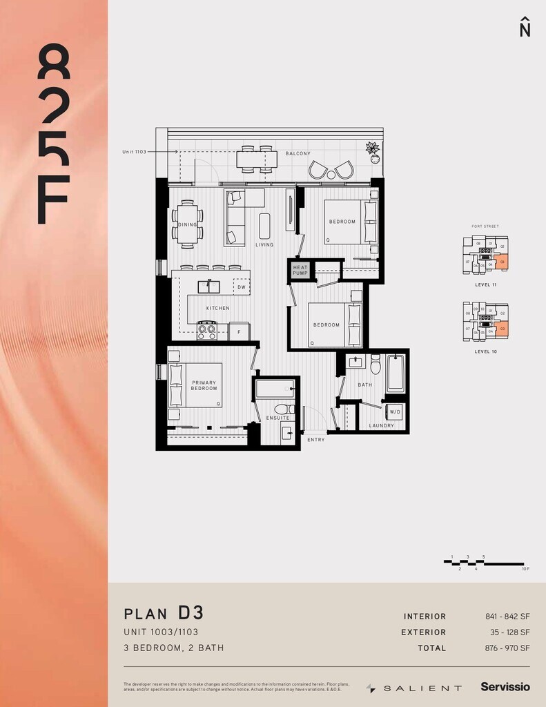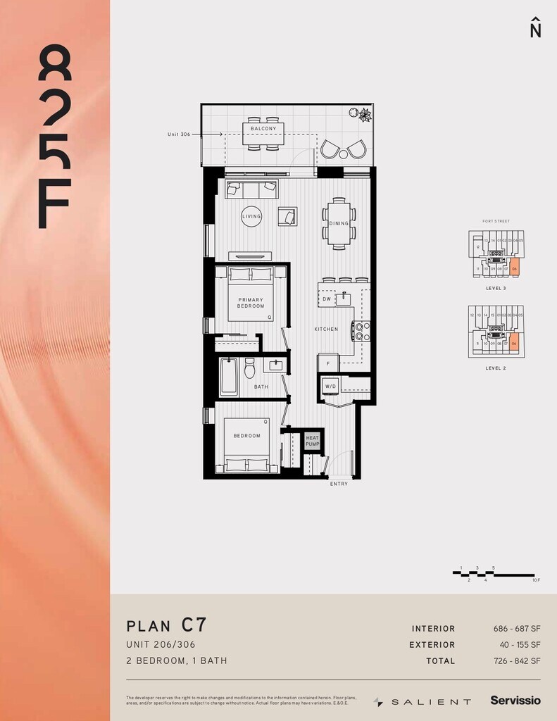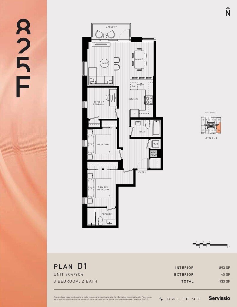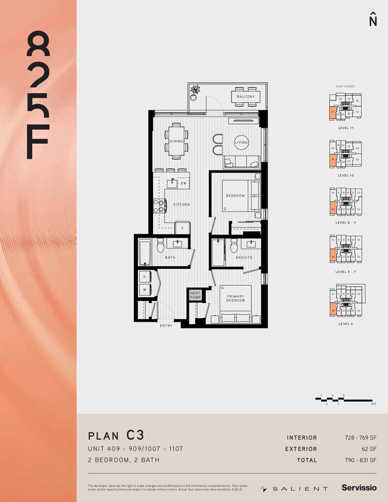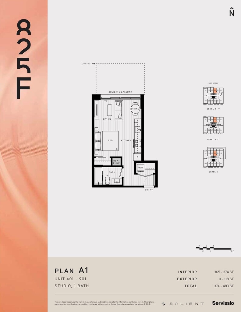 825 FORT offers Studio to 3 Bedroom apartments starting from $1,599 and having 365–992 sq ft. Here is the current pricing and availability: