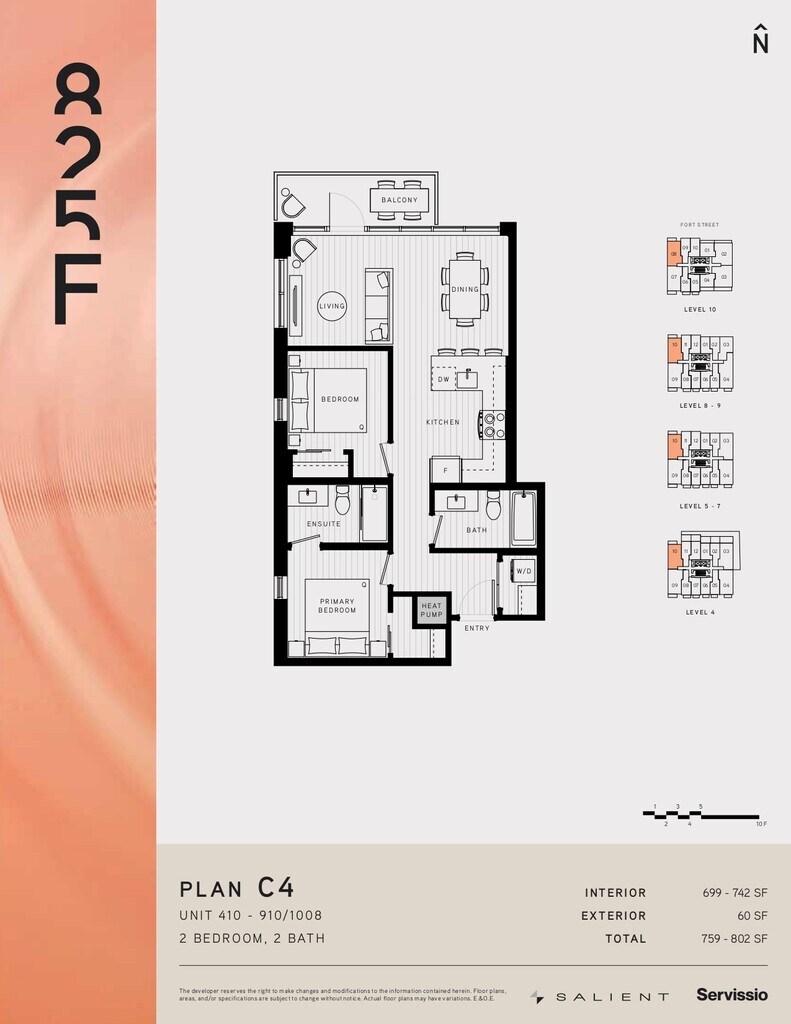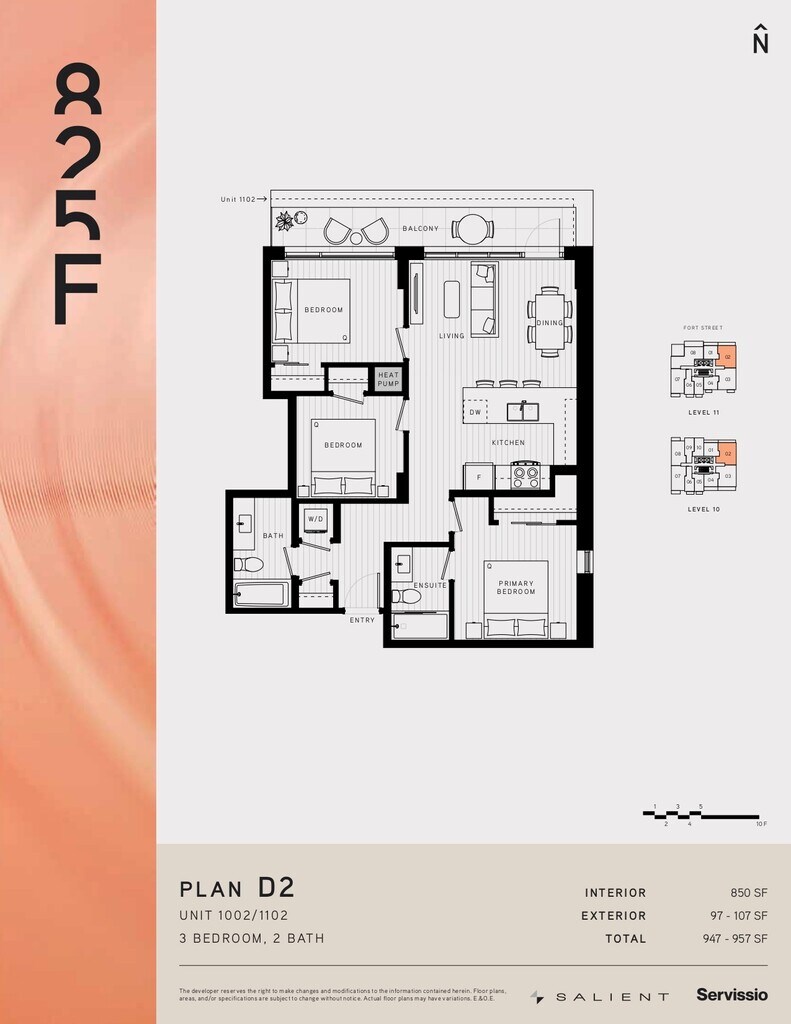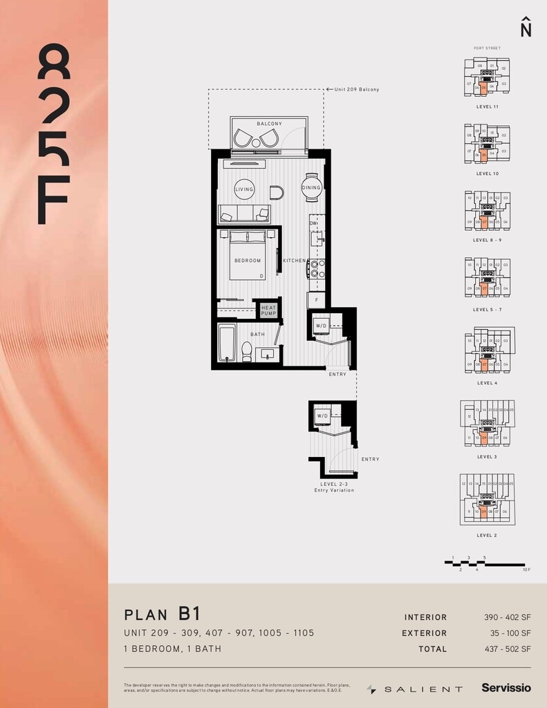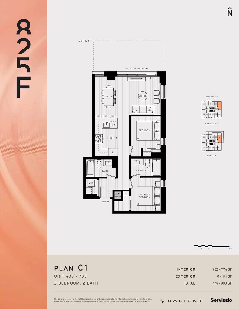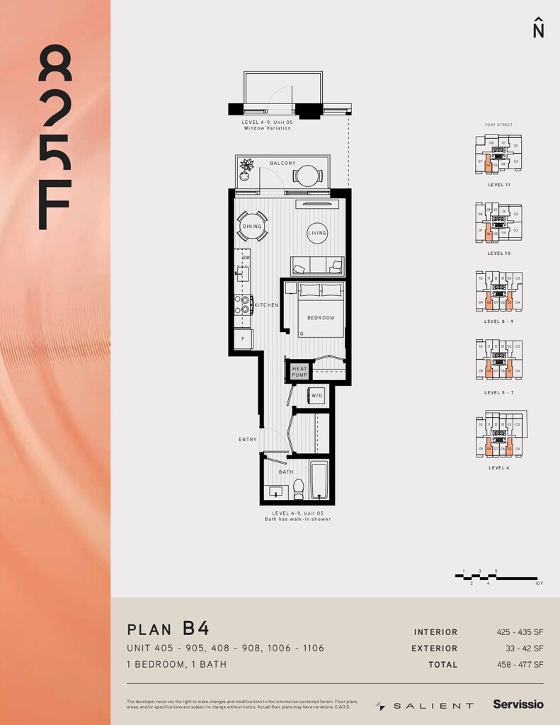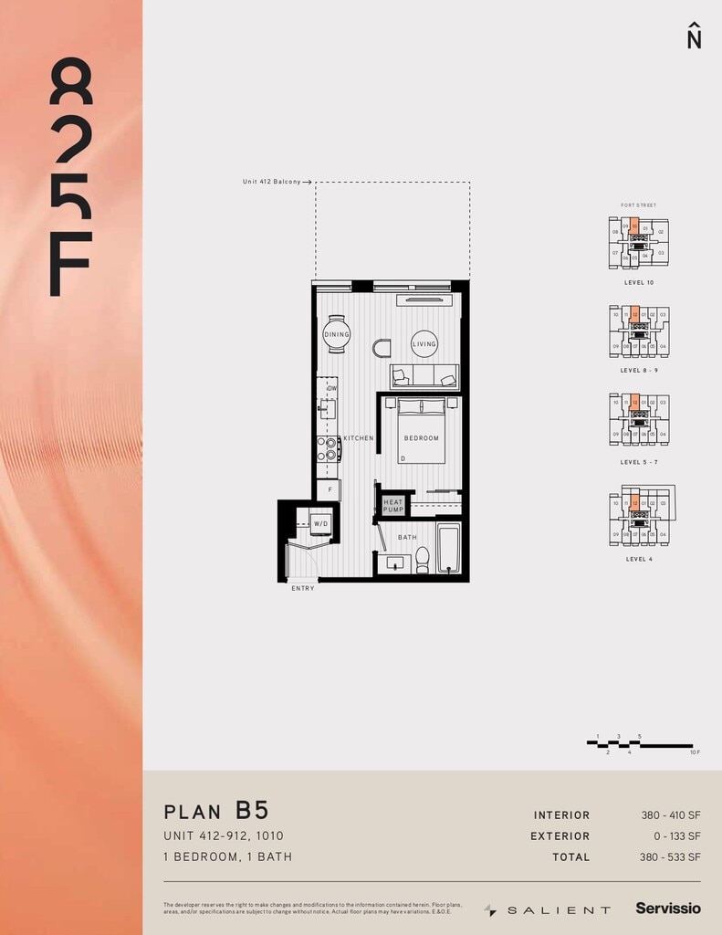 825 FORT offers Studio to 3 Bedroom apartments starting from $1,599 and having 365–992 sq ft. Here is the current pricing and availability: