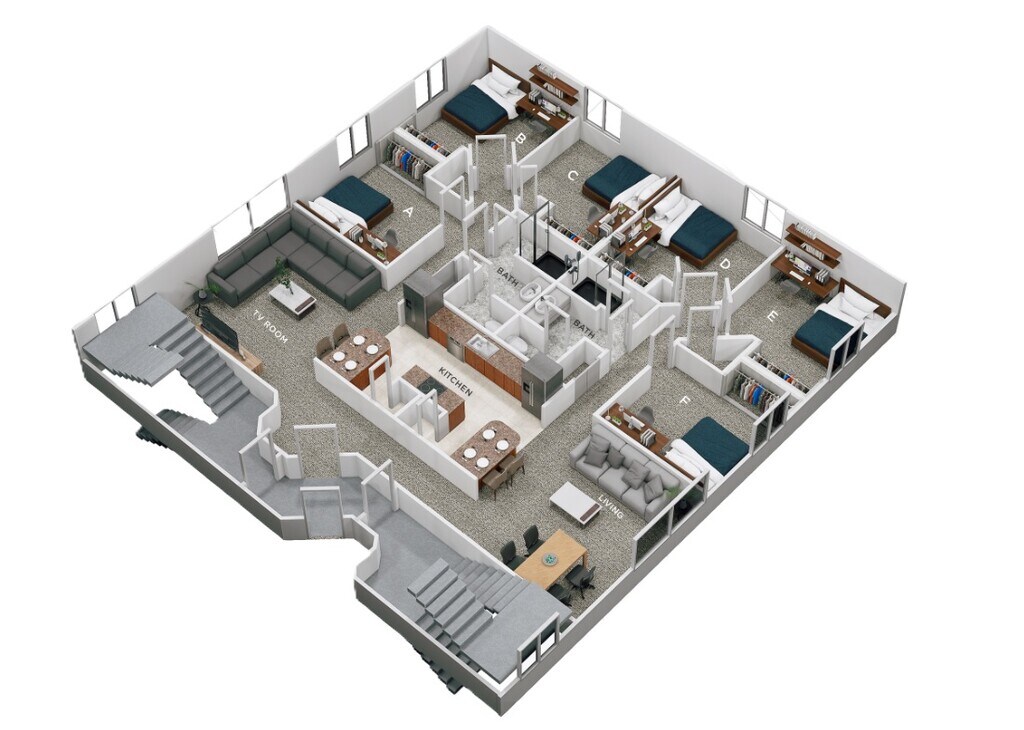 Apartment Model: 6-Unit SuiteFrom $1,1456 Bedroom, 2 Bath, 1870 sq ftAvailable Now![]()