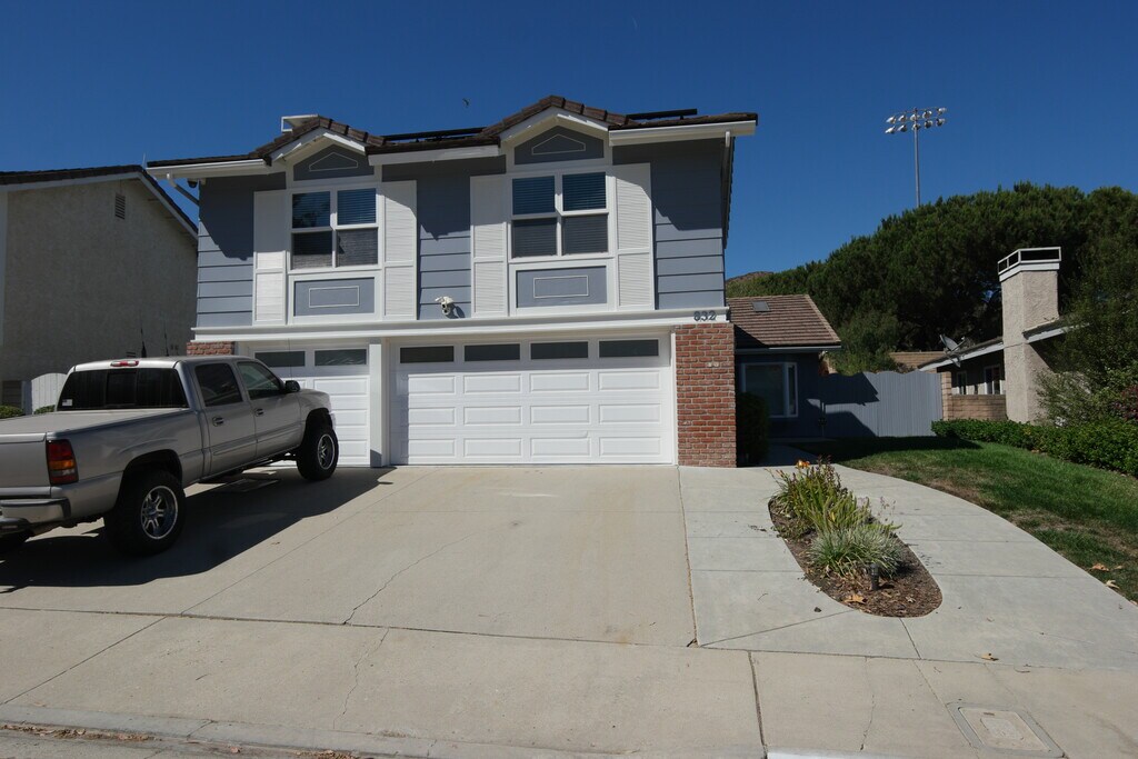 Located in Newbury Park. Welcome to this spacious and beautifully maintained 5-bedroom, 3-bath home in the heart of Newbury Park. This thoughtfully designed home features a desirable floor plan with one bedroom and a three-quarter bath conveniently located downstairs perfect for guests or a home office. Step into the large living room with vaulted ceilings and skylights that fill the space with natural light. The formal dining area is ideal for entertaining, while the upgraded kitchen boasts stainless steel appliances, a generous center island with breakfast bar, and plenty of counter space. The adjacent family room offers a cozy fireplace and a built-in wet bar perfect for relaxed evenings at home. Upstairs, you'll find an oversized primary suite with a large walk-in closet and a beautifully updated en-suite bathroom featuring dual vanities and a luxurious soaking tub. Three additional spacious bedrooms, a hall bath with newer vanity and fixtures, and a bonus room with its own fireplace provide plenty of room for family and flexibility. Additional highlights include a three-car garage, central air conditioning, and a beautifully landscaped backyard with a covered patio perfect for outdoor dining and entertaining. Located near scenic parks, hiking and biking trails, shopping, and award-winning schools, this home offers the best of Newbury Park living
