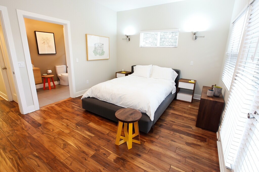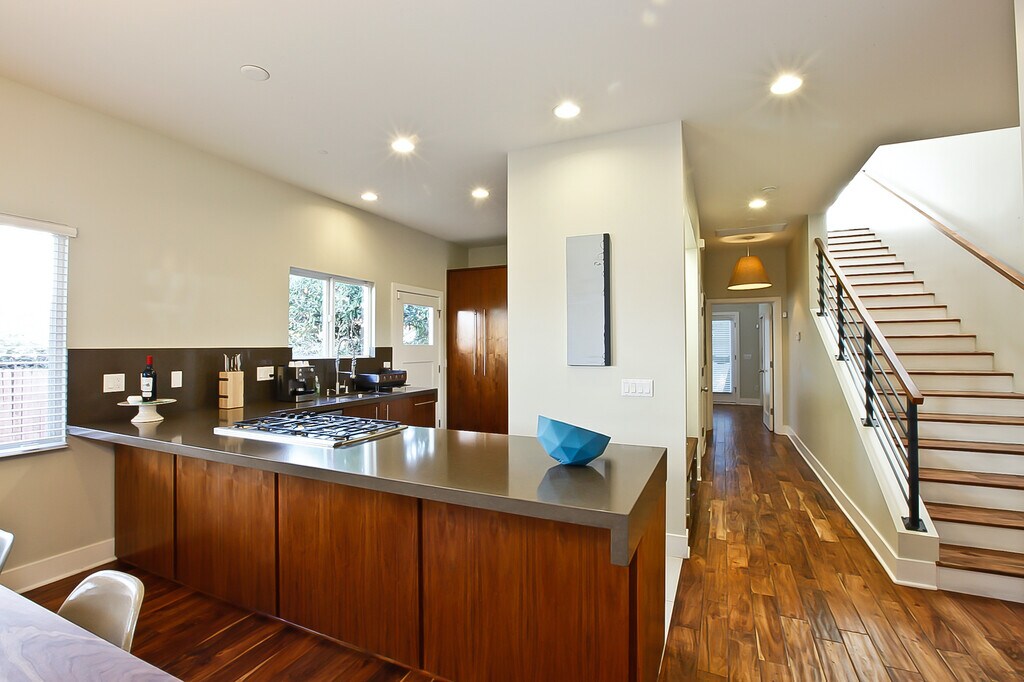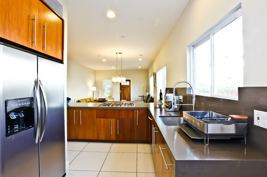 This contemporary architectural home was built in 2009 by Mexico City’s Alejandro Artigas. It features an open and airy 1,800 square foot floor plan with 2 bedrooms and 2 bathrooms. Each bedroom has a unique appeal and comes with a luxurious on suite bathroom. The home is part of a duplex with no shared walls in the bedrooms providing a very quiet and private space. The shared yard is separated by trees and bushes. This location is perfect with many shops, restaurants, bars, galleries and hiking trails within minutes. The upstairs master suite has a huge layout with a giant walk in closet and a beautiful terrace attached. The master suite bathroom has heated floors, a giant rain shower, modern Eco-friendly toilet, and features double sinks. The second bedroom has French doors out to the back yard, a large closet, bathroom attached with tub/shower, modern Eco-friendly toilet, large sink, and heated floors. Both bedrooms have plenty of storage space. One block from La Brea between Melrose and Santa Monica, the location is perfect with many shops, restaurants, bars, galleries and hiking trails within minutes. *This apartment is also available fully furnished, please inquiry for details.