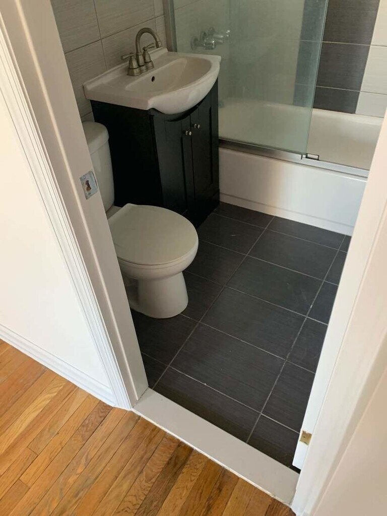 High ceilings, hardwood floors throughout, beautiful custom fireplace, Open floor plan kitchen/living room, new bathroom, spare room that can be used as office with large closet, and huge bedroom with ample closet space. The unit is located on the 1st floor of nicely maintained and secure building on Bushwick Avenue. Youre one block from commercial area on Broadway with coffee shops, bars, organic market, laundry, pharmacy, post office and the Kosciuszko stop on the J train. Heat & Hot water included.