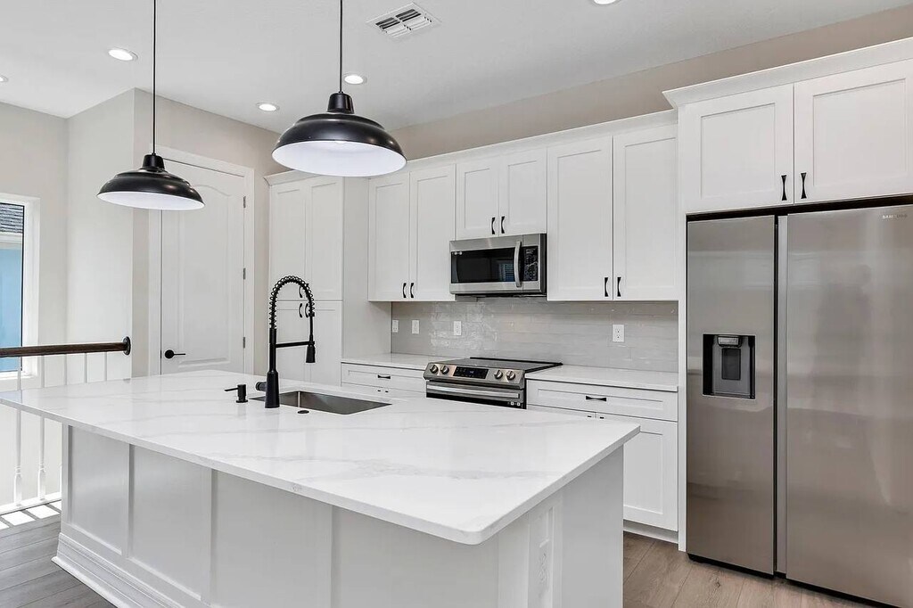 Apartment built late 2023 above large detached garage in the Heart (Phase 1) of Laureate Park. Live in this meticulously crafted apartment with premium appliances - Refrigerator, dishwasher, microwave, washer, and dryer. This apartment features an open-concept living room with a large beautiful kitchen. The bedroom has a sizable closet with 3 windows of which 2 are located by the desk nook which will help with resting your eyes in-between work or study sessions. In fact, the property has 10 windows for a bright open feel. The bathroom is beautiful with a full-size walk-in frameless shower, two sinks, and soft-close cabinets like the kitchen. It is accessible from both the bedroom and the living room area. It includes private gigabit internet, perfect for anyone that works or studies from home. Every room has wired ethernet jacks where you can take advantage of the full internet speed from the provider. It is also pre-configured with an Orbi mesh wifi network for your convenience. The internet and water are paid for by the owner. You only pay for electricity. This unit features an on-demand water heater and full size in-unit washer and dryer. It has luxury wood-look stairs and flooring throughout. The kitchen island features a huge slab of capicola quartz that you can use as your main dining area with matching countertops on the rest of the kitchen. The internet and water are paid for by the owner. You only pay for electricity. This unit features an on-demand water heater and full size in-unit washer and dryer. It has luxury wood-look stairs and flooring throughout. The kitchen island features a huge slab of capicola quartz that you can use as your main dining area with matching countertops on the rest of the kitchen. There are spacious 10 foot ceilings which you can take advantage of in the closet. There is also an insulated attic across the entire length of the property for much more additional storage. There are two in-wall chases for HDMI hook-ups for TVs. When you cook, the cooktop/microwave vents outside instead of the standard filter & recirculation. You are a short walking distance from the 3 Pools and basketball court. Optionally, you and your guests have access to the amenities for a small yearly HOA fee. There are many more amenities to include Tennis Courts that can be reserved. This property is a 10 minute drive or Uber/Lyft to the airport and a 10-15 minute walk to the VA Hospital and UCF Medical Centers, Nona Adventure Park, and 3 minute walk to Canvas and the pool area. Boxi Park is a 5-minute drive for amazing food and frequent live entertainment. Walk or cycle to Publix and a number of other restaurants nearby. Enjoy tons of both paved and shelled trails. You have your own private address for deliveries. You have your own private entrance and the parking is open street parking. I have a small paved landing near your door to temporarily park to drop-off your groceries. I will consider a pet. The application fee will go directly to credit history and references. Deposit is typically one-month's rent with good credit. All mentioned in more detail in main listing. Pets considered. Internet & Water included. You pay only for electricity. Plenty of near street parking with access to a paved landing spot for grocery drop-off. Must qualify. To move in you would need 1st month's rent and 1 month deposit by default. I can work with minor credit issues, but it may make the deposit higher. This version maintains the original meaning while making the requested substitutions sound natural.