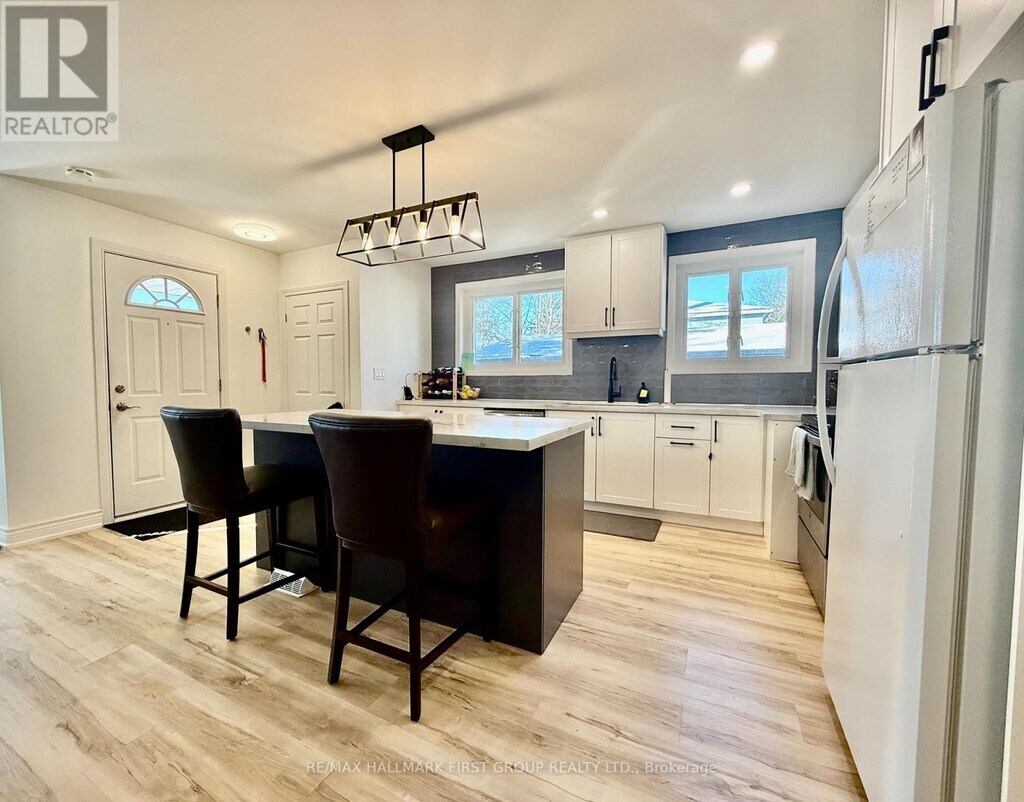 This fully renovated and meticulously maintained three-bedroom bungalow delivers modern comfort in an exceptional Pickering location. Just steps from the waterfront,dining,Pickering Town Centre,the GO Station,transit routes,schools,and parks; everything you need is right at your doorstep. Inside,a thoughtfully designed open-concept layout features large living and dining areas filled with natural light from oversized windows. The gourmet kitchen is equipped with quartz countertops,a custom backsplash,and an oversized breakfast bar,making it ideal for both everyday living and entertaining. Three well-proportioned bedrooms offer ample closet space and bright windows. Additional highlights include a renovated three-piece bathroom,carpet-free interior,ensuite laundry,private entrance and convenient parking for two vehicles. (id:52069) ID#: 1644945