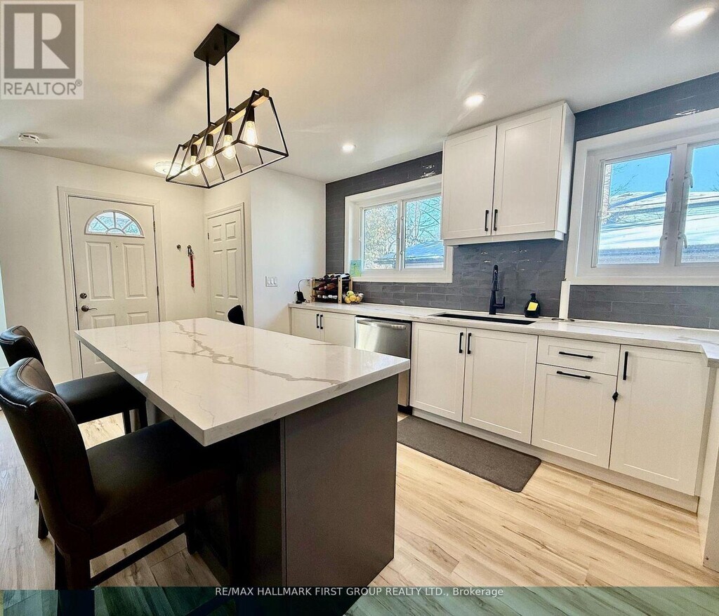 This fully renovated and meticulously maintained three-bedroom bungalow delivers modern comfort in an exceptional Pickering location. Just steps from the waterfront,dining,Pickering Town Centre,the GO Station,transit routes,schools,and parks; everything you need is right at your doorstep. Inside,a thoughtfully designed open-concept layout features large living and dining areas filled with natural light from oversized windows. The gourmet kitchen is equipped with quartz countertops,a custom backsplash,and an oversized breakfast bar,making it ideal for both everyday living and entertaining. Three well-proportioned bedrooms offer ample closet space and bright windows. Additional highlights include a renovated three-piece bathroom,carpet-free interior,ensuite laundry,private entrance and convenient parking for two vehicles. (id:52069) ID#: 1644945