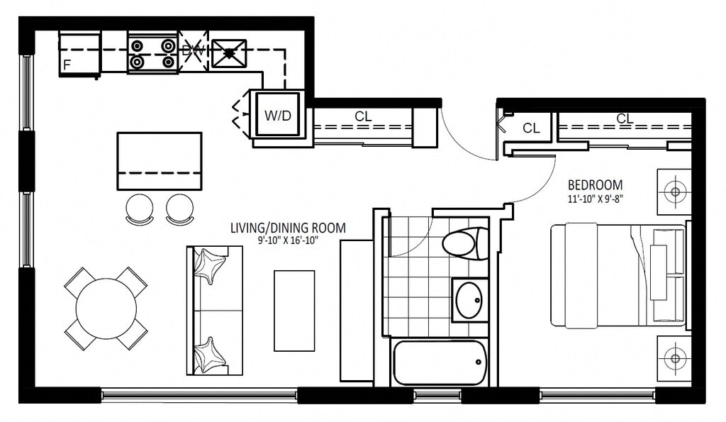 855 Jervis - Plan A - Floorplan Apartment Unit: 403Apartment Model: 855 Jervis - Plan A$2,189Studio, 1 Bath, 449 sq ftAvailable Now1 Bedroom