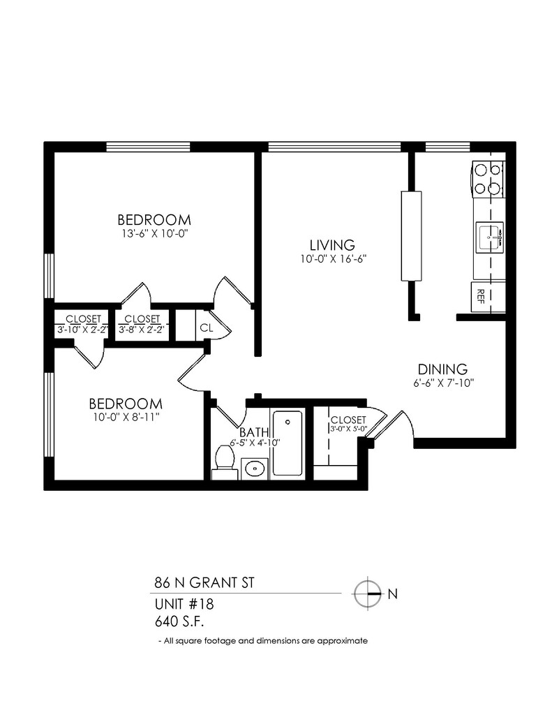 86 Grant 2 Bedroom x 1 Bath - Floorplan 6 Apartment Unit: 24Apartment Model: 86 Grant 2 Bedroom x 1 Bath2 Bedroom, 1 Bath, 785 sq ftAvailable Now