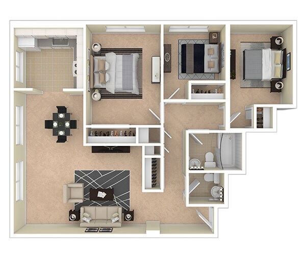 2 Beds, 1.5 Baths, 890 sq ftModel Gallery