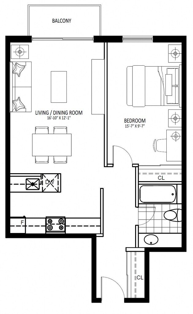 Apartment Model: 8675 French - Plan E$1,8591 Bedroom, 1 Bath, 460 sq ftAvailable Now![]()