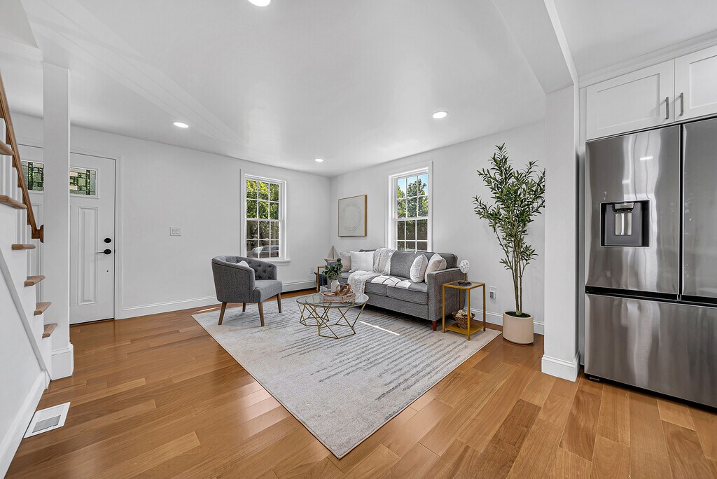 This beautifully updated 4-bed, 2-bath home blends modern comfort, timeless charm, and privacy. Nestled in a welcoming neighborhood, it’s been thoughtfully renovated—no detail overlooked. Step inside to an open-concept layout with gleaming Brazilian oak hardwood floors, a brand-new kitchen with stainless steel appliances, and two elegant full baths. Central heating and cooling offer year-round comfort, while the second floor features a laundry area and versatile family room—ideal as a playroom, home office, or TV room. Enjoy peace of mind with major updates including a new roof and siding, 2 freshly paved driveways, 200amp electrical panel, detached garage, and backyard shed. Out back, relax or entertain in the private yard with patio—perfect for summer nights or morning coffee. Whether you're seeking a serene retreat or a move-in-ready home, this one delivers. Don’t miss it!