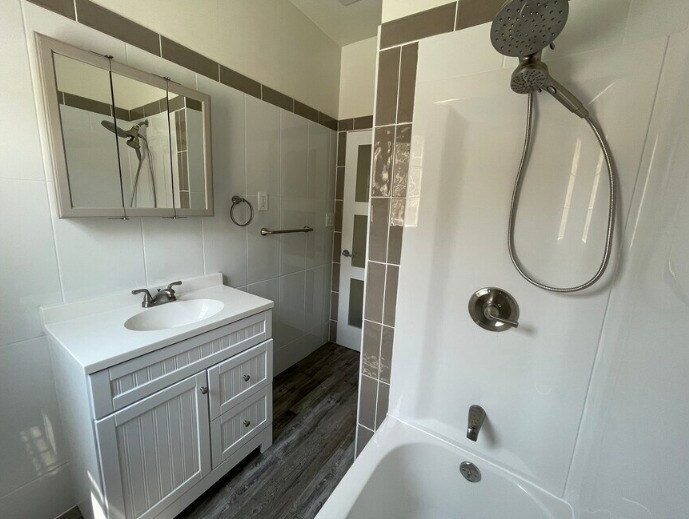 Bathroom with shower + tub combination, brand new fixtures, storage space, and tiled walls. Located on the border of Beverly Hills, by Robertson and Olympic, you'll be just a short walk away from Starbucks, Juice Crafters, Robertson Blvd, and La Cienega Park. Conveniently a 7-minute drive to the 10 Freeway, 4 minutes to the Beverly Center, Beverly Connection, and 3rd street shops and restaurants. Call now with any questions or to schedule a showing!