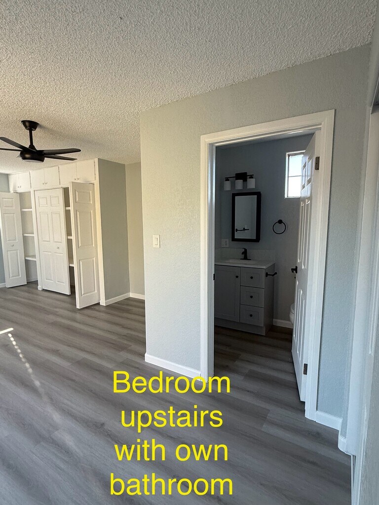 Upstairs room for rent with ensuite bathroom and private patio. Month-to-month 12 months minimum with contract. Female preferred (student or professional) $1500 for single occupancy ($750 deposit) $1800 for double occupancy ($900 deposit) Upstairs with private patio Private bathroom Big space room 2 ceiling fans