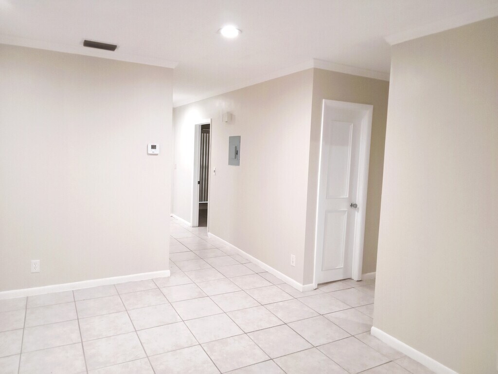 Sunny 2/2 villa for rent in GATED 55+ Community with lakes. West/Central Boca Raton. $2000/mo. 1 Year Lease Minimum. Property has been fully renovated and repainted. Rent includes: Water, exterior lawncare, pest control & basic cable! Vacant, ready to move in. Owner will show by appointment to 55 + potential renters with a minimum 700+ credit score for HOA approval (this is a HOA requirement) Great Location! Across the street from Somerset Shoppes Plaza off Glades Rd. & Lyons in scenic Boca Lakes. Near St. Andrew's and Town Center Mall. Walk to Somerset Shops Plaza restaurants, TJ Maxx, Off Saks Fifth Avenue and Chase Bank. Near Turnpike. 20 min. from beach by car. Community clubhouse, big swimming pool, sauna, piano lounge with social activities and events, tennis courts & bocce. Women's club, book club, card tables, piano lounge area and social events at clubhouse. Lots of extra storage shelving added in the kitchen Upgraded Oven / Stovetop from burners to glass top. 2 PARKING SPACES in front of the condo entrance. Background Check Fee per person and HOA New Lease Application fee will apply. Both payable to Boca Lakes Condo Association. Quoted rent is for 1-2 non-smoking persons with no pets. Small pets accepted (Emotional Support Animal). Need a separate Association application. Villa has hurricane impact windows throughout. New Building Roof ( installed less than 2 years ago) NEW 2024 AIR CONDITIONER, blows very cold. Storage space closet in the back yard, with lock. Owner has 4 Point Licensed Interior Inspection reports available from Summer 2021 & 2023 showing everything (all plumbing, electric, appliances) tested and working and to code. New upgraded electric panel (helps lower FPL monthly electric bills) Accessible one story (no elevator, no stairs) Well-kept senior scenic Boca Lakes community with lakes and walking streets. 2 full remodeled bathrooms and kitchen (all new wood cabinets, 2 brand new showers, 2 brand new toilets) Added built-in closets in Main Bedroom. Added counter space, pantry, and broom closet in kitchen. Brand new kitchen disposal. New waterproof laminate flooring in Main Bedroom and kitchen. Rest is porcelain white tile. Crown moldings throughout. Door trim. New LED clear white ceiling lighting throughout. Ceiling fans in both bedrooms. Washer & Dryer in unit. Small patio in the backyard with space for patio furniture.