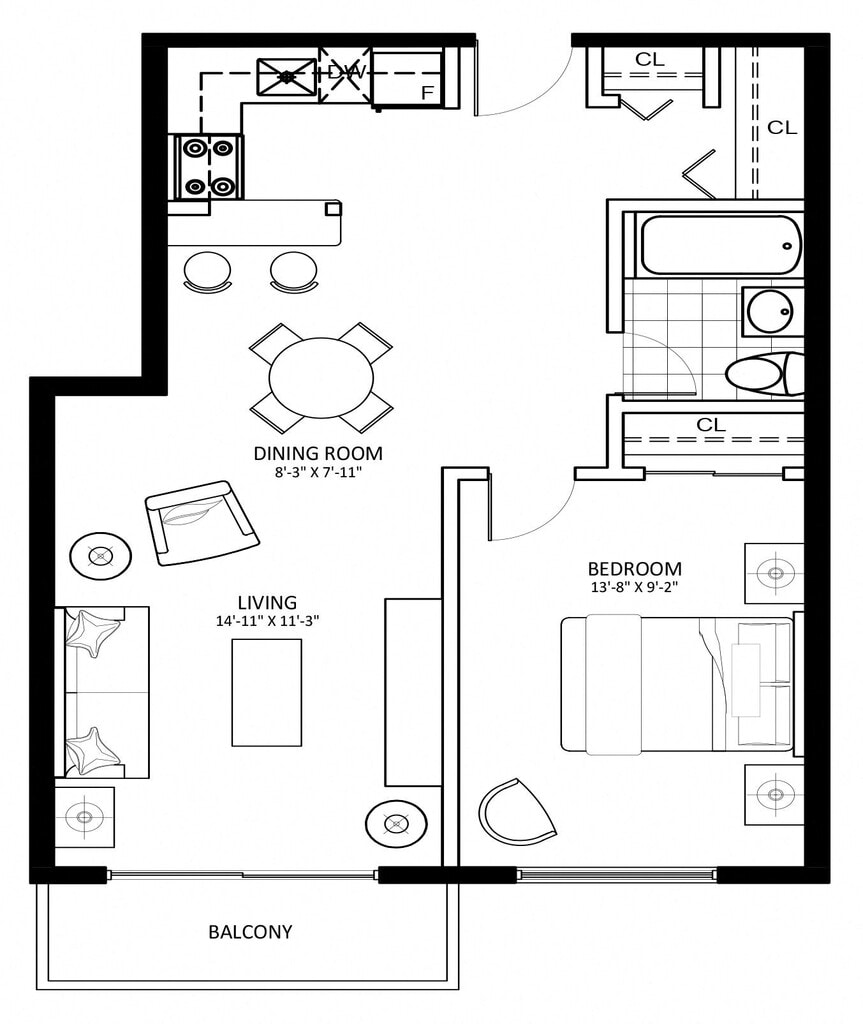 1 Bed, 1 Bath, 630 sq ftAvailable NowModel Gallery