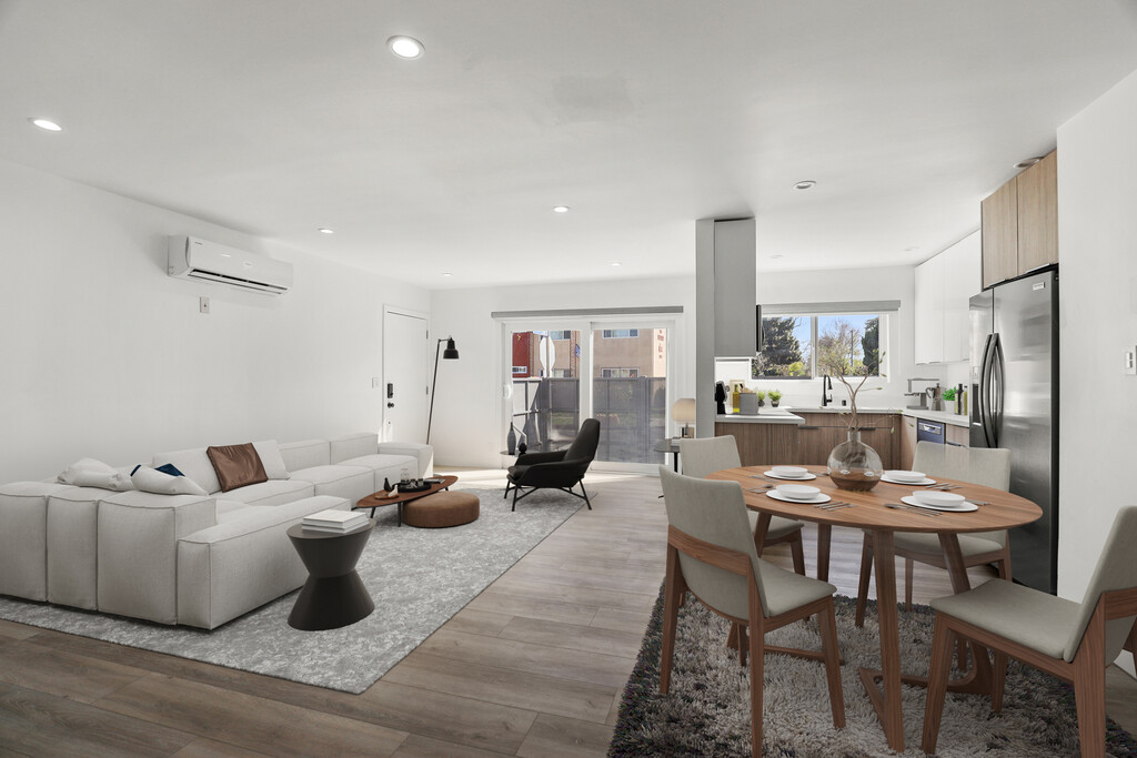 Inspired by Mid Century Modern style architecture these two-story luxury rental homes are in the highly desirable La Cienega Heights neighborhood, on the Westside of the city of Los Angeles, California. The community has a very central location minutes off the 10 Freeway on the La Cienega Boulevard exit. Beverly Hills, Santa Monica, West Hollywood, Westwood, Palms, and Culver City are just minutes away. Carefully restored and designed by a renowned LA designer, these mid 1960s vintage luxury rental homes feature keyless entry door locks to spacious studios to three-bedroom floor plans with entry ways to newly renovated kitchen and bathrooms. The kitchen boasts sparkling white stone quartz countertops with brand new self-closing cabinetry and high-end Samsung stainless-steel refrigerators with matching gas cooktop with oven and microwave. Stacked washer and dryers included inside each rental home with porcelain tiled bathtubs, and glass shower doors and separate guest bathrooms. Each rental homes also includes central A/C cooling and heating with recessed lights with luxury style remote control blinds and distressed wood plank floors. And all units have a large patio or balcony with on-site parking. Drake Real Estate Group | Welcome home | Schedule your private viewing | | EXTERIOR | - Newly Modernized Façade - City Approved & Completed Earthquake Seismic Retrofit - Keyless Electronic Entry | INTERIOR | - Cellular Shade Window Blinds - Spacious Designer Floor Plan - Vinyl Plank Flooring | KITCHEN | - Modern Designer Cabinetry - Quartz Countertops - Stainless-Steel Appliances - Refrigerator - Range w/ Oven - Microwave - Open Kitchen Space Layout | BATH | - Tiled Shower and Bath - Glass Shower Doors - Oversized Vanity Mirror | AMENITIES | - Washer & Dryer (in unit) - Assigned Parking - A/C Units