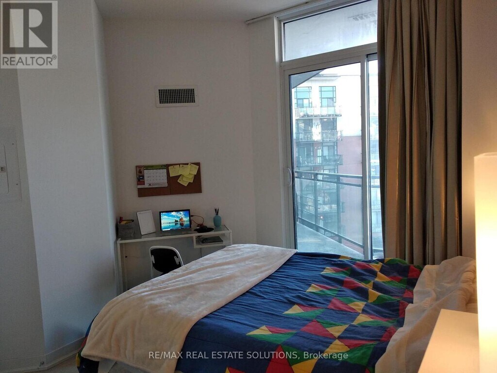 Welcome to Showcase Lofts,one of Toronto's most sought-after boutique loft residences! This bright and spacious 1-bed,1-bath suite perfectly blends modern design with authentic industrial character. Featuring 9-ft ceilings,engineered wood flooring,and a stunning reclaimed brick accent wall,this unit offers warmth,texture,and timeless style. The open-concept living and dining area flows seamlessly into a modern kitchen equipped with stainless steel appliances including a gas stove,sleek cabinetry,and ample storage. Step out to your private north-facing balcony overlooking the peaceful courtyard,providing a quiet escape from city life. The spacious bedroom includes generous closet space,while the modern bathroom features a deep soaker tub and chic contemporary finishes. Residents enjoy exceptional amenities such as a 24-hour concierge,fully equipped gym,party room,theatre room,guest suite,and visitor parking. Ideally located in one of Toronto's most vibrant neighbourhoods,you're just steps from public transit,parks,boutique shops,trendy cafés,and top-rated restaurants. Available for immediate occupancy,this unique loft delivers the perfect balance of character,comfort,and convenience-an urban retreat you'll be proud to call home. (id:52069) ID#: 1882415