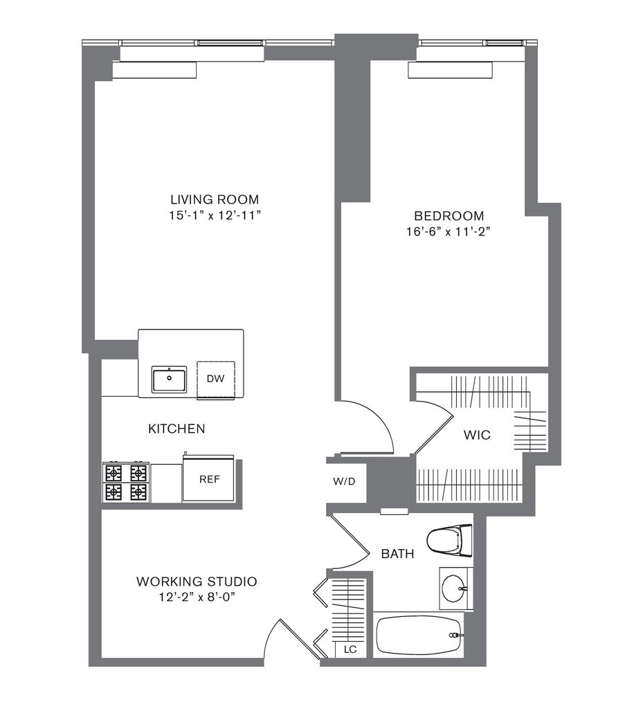 Studio, 1 Bath, 481 sq ftLargest StudioThis is the largest Studio at this PropertyModel Gallery