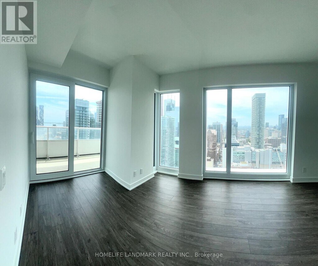 Experience Elevated Urban Living at 88 Queen! This stunning corner suite features a rare enclosed balcony and soaring super-large,South-West facing windows that flood the space with natural light and offer breathtaking,unobstructed views of the Lake and CN Tower. Perfect for modern living,the primary bedroom boasts "His and Hers" closets for ultimate organization. Stay connected with High-Speed Internet included in your rent! This luxury 3BR/2BA floor plan includes 9ft ceilings,a sleek integrated kitchen with quartz counters,and laminate flooring throughout. Enjoy world-class amenities: an outdoor infinity pool,jacuzzi,gym,movie theatre,and co-working space. Steps from Queen Subway,TMU,Financial District,and Eaton Centre. (id:52069) ID#: 2189543