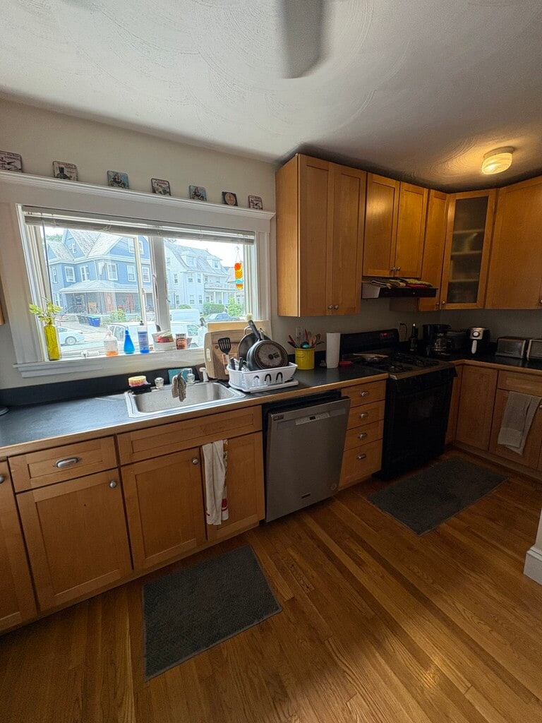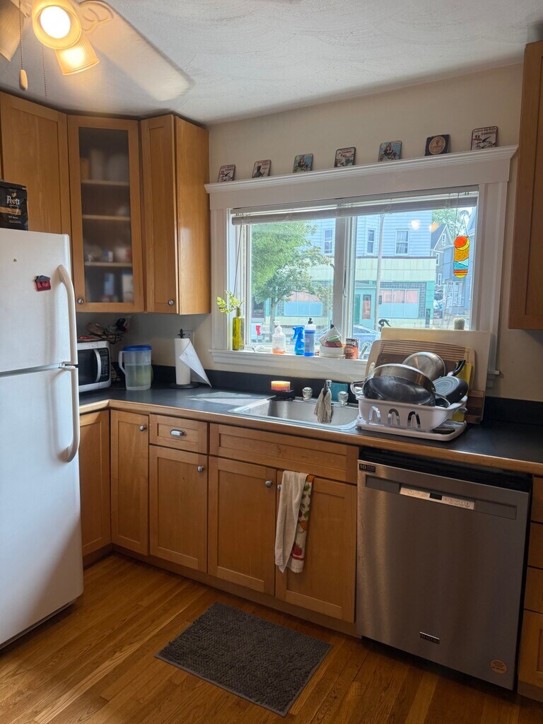 Welcome to this bright and beautifully maintained 4-bedroom, 2-bathroom home, offering two spacious levels of comfortable living, seamlessly connected by a striking spiral staircase. Flooded with an abundance of natural light, the upper level features a spacious living room and a formal dining area—perfect for entertaining or relaxing in style. The modern eat-in kitchen is a true highlight, thoughtfully equipped with stainless steel appliances, including a gas stove, refrigerator, dishwasher, and disposal. Gleaming hardwood floors run throughout, adding warmth and elegance to the home’s inviting atmosphere. Each level includes a full bathroom: – The upper-level bath features a classic shower/tub combo with clean, timeless finishes. – The lower-level bath boasts a modern full bath with stylish tile and a contemporary vanity. Additional Highlights: – Two dedicated parking spaces on the Walker Street side – Coin-operated laundry in the basement – Available for move-in starting October 1st, or sooner! Set in a desirable location, this residence blends comfort, charm, and practicality—ideal for those seeking space, style, and convenience. Come see what makes this home truly special. Available 10/1 or sooner! Move-in costs: First, Last, Security deposit