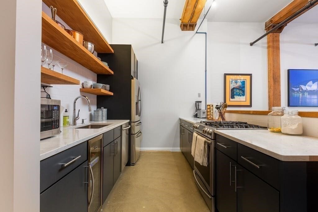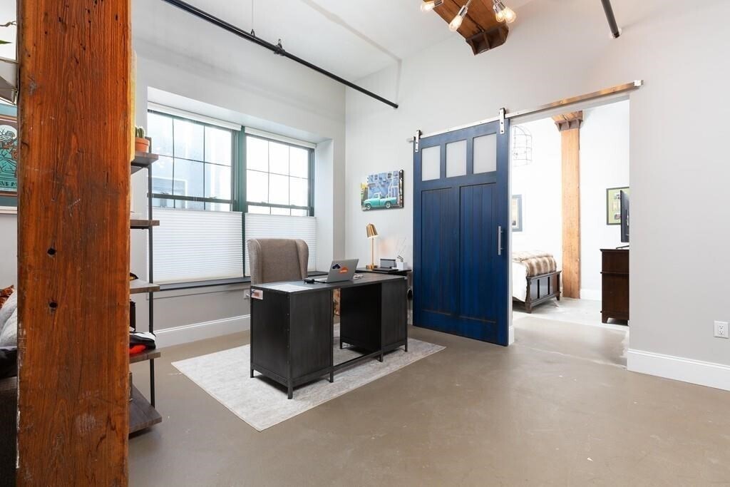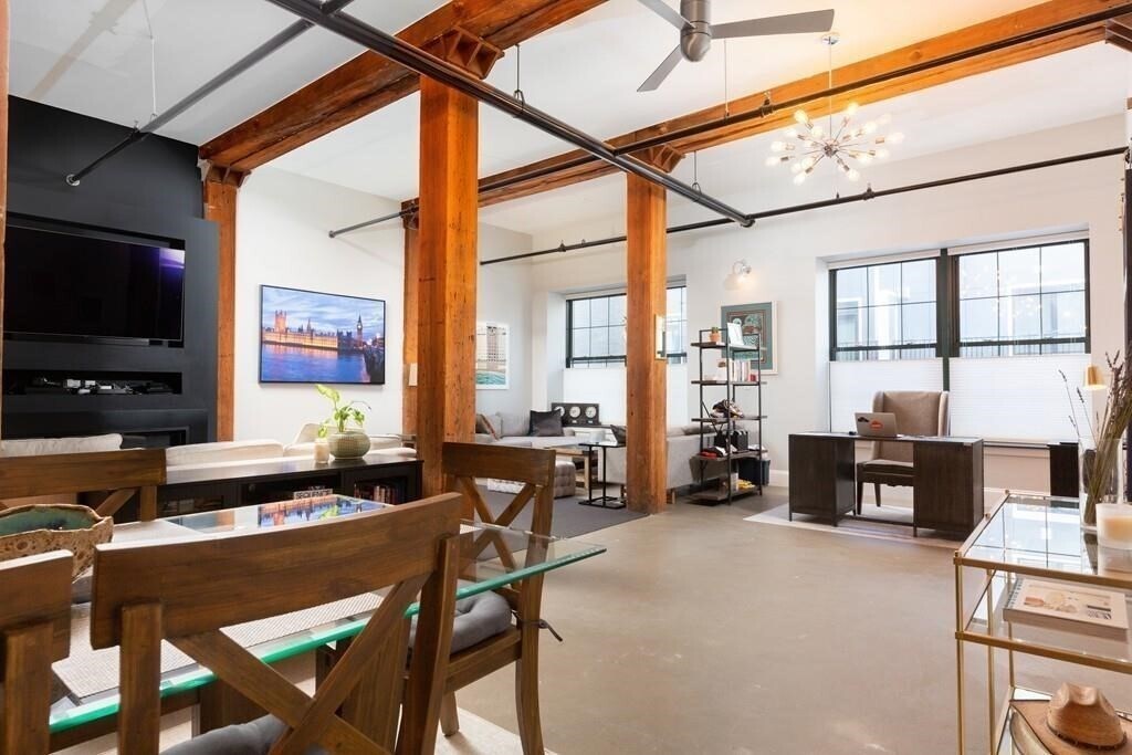 Discover 881 E 1st, Unit 103 — a gem in South Boston's coveted City Point neighborhood! Renovated in 2018, this stunning 2 bed, 1 bath loft spans over 1700 sq ft and perfectly blends historic character with modern luxury. Step inside to be greeted by an expansive living area and soaring 13 ft ceilings. The inviting layout features an open-concept kitchen, large dining space and multiple seating areas. Updated kitchen is outfitted with stainless steel appliances, dishwasher and wine fridge included. Both bedrooms include a sizeable closet. The beautifully renovated bathroom has a waterfall shower and dual vanity. In-unit laundry and ONE PARKING SPACE included. This one-of-a-kind home is part of a professionally managed building with access to a common patio and yard. Easy access to all that Southie, the Seaport and Downtown have to offer. Less than half a mile to Castle Island and Thomas J. Butler Memorial Park outside your front door. FLEX MOVE IN OCT 1 - NOV 1. Pets negotiable.