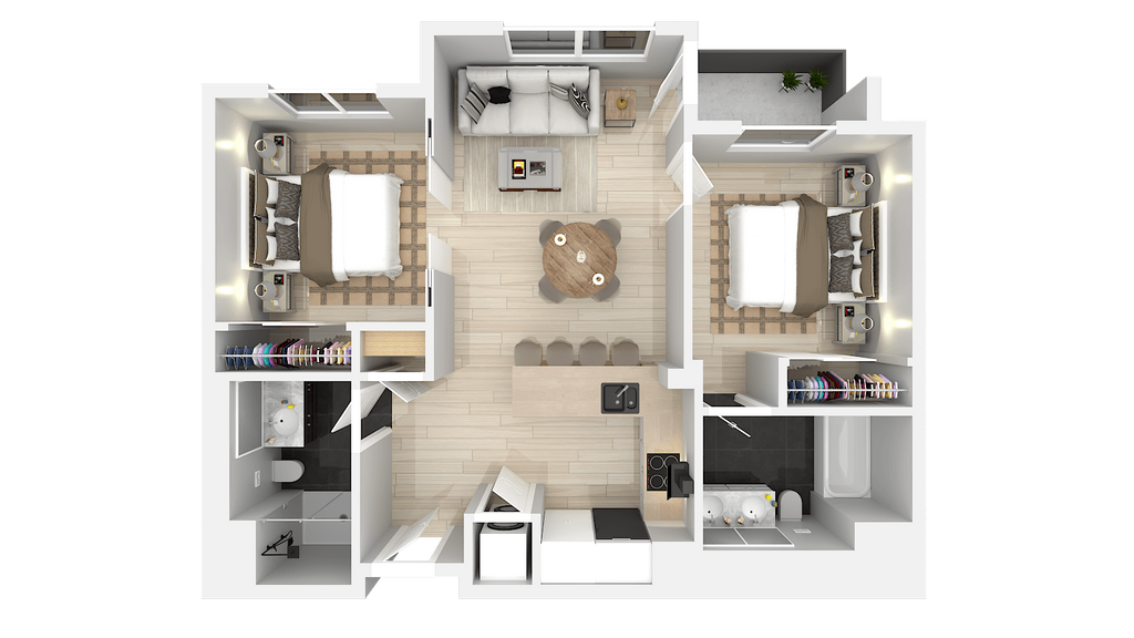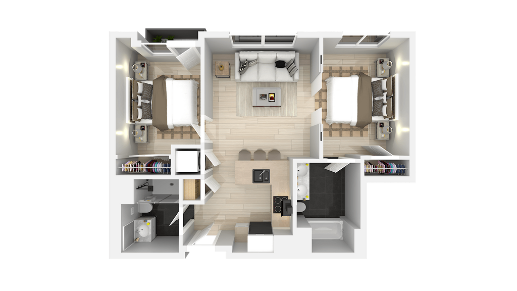 1 Bed, 1 Bath, 617 sq ftModel Gallery