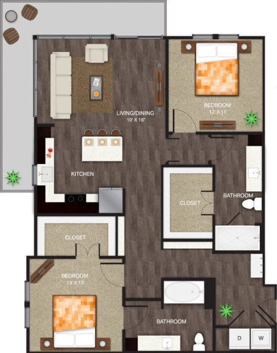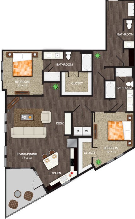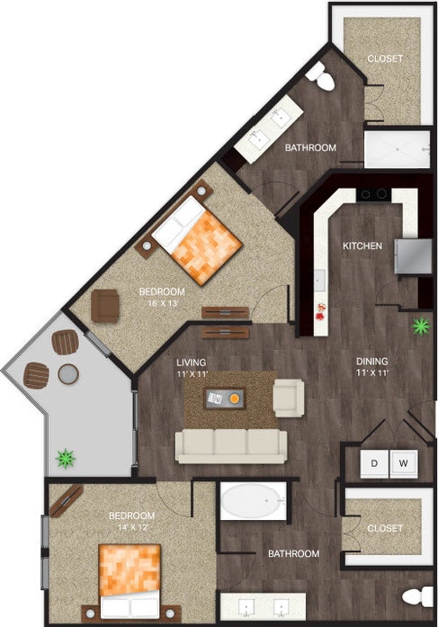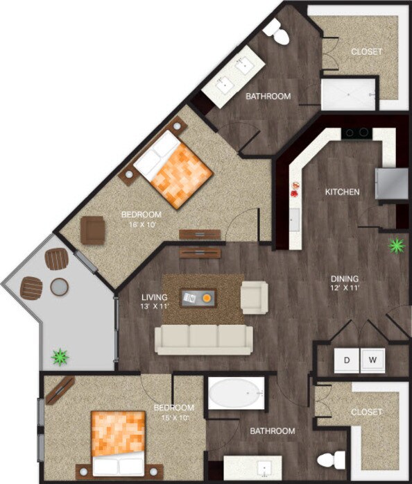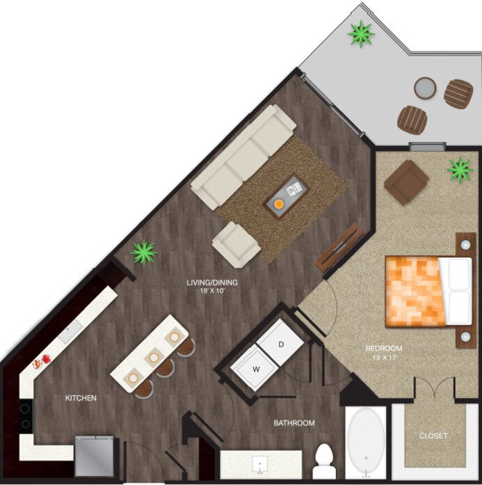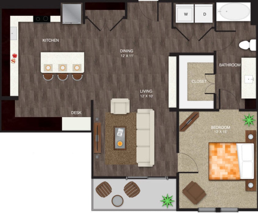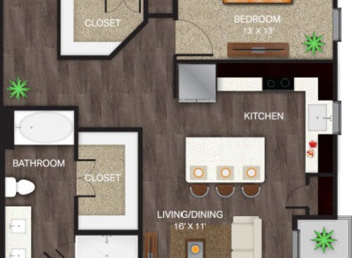 Apartment Model: A2From $1,2001 Bedroom, 1 Bath, 760 sq ftAvailable NowFloorplansPhotos![]()