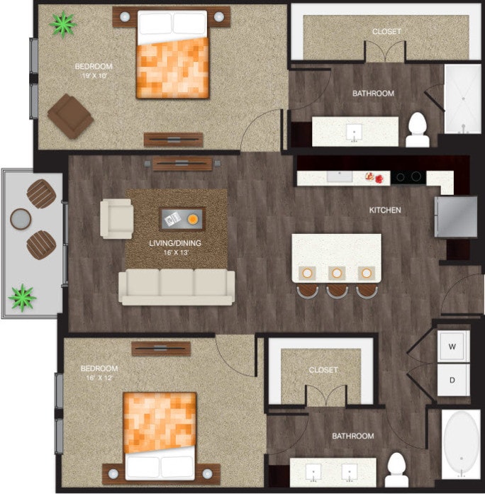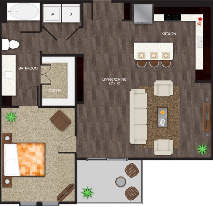 With several unique floor plans to choose from, 88twenty is sure to have a layout that is perfectly tailored to suit your needs. Choose from one of our studio, one, or two-bedroom floor plans, which range from 592 to 1,649 square feet of living space. Home chefs will admire the modern designs in our open, gourmet kitchens, with sleek stainless steel appliances and islands in select units. Large living areas feature elegant wood-style flooring, oversized windows, and custom lighting. Bedrooms are spacious, offering expansive walk-in closets, and dual-vanity bathrooms with garden style soaking tubs. Each apartment home includes a laundry room with a full-sized washer and dryer for your convenience. At 88twenty, we have carefully crafted your new home to perfectly suit your lifestyle.