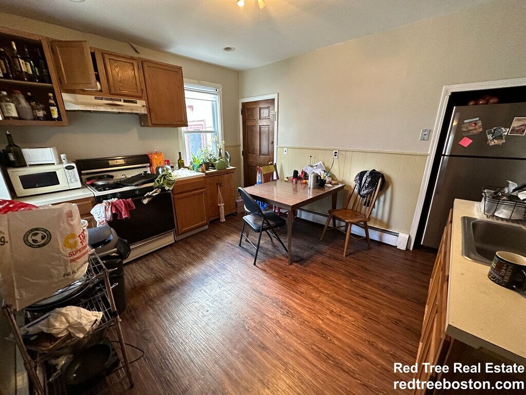 Five room apartment with two spacious bedrooms and an eat-in kitchen. Very convenient location steps to the Lechmere Green Line stop and close walk to Kendall / MIT. Lots of restaurants and shops nearby, as well as the Charles. Wood floors. Replacement windows. New efficient gas boiler. Coin op laundry in basement.