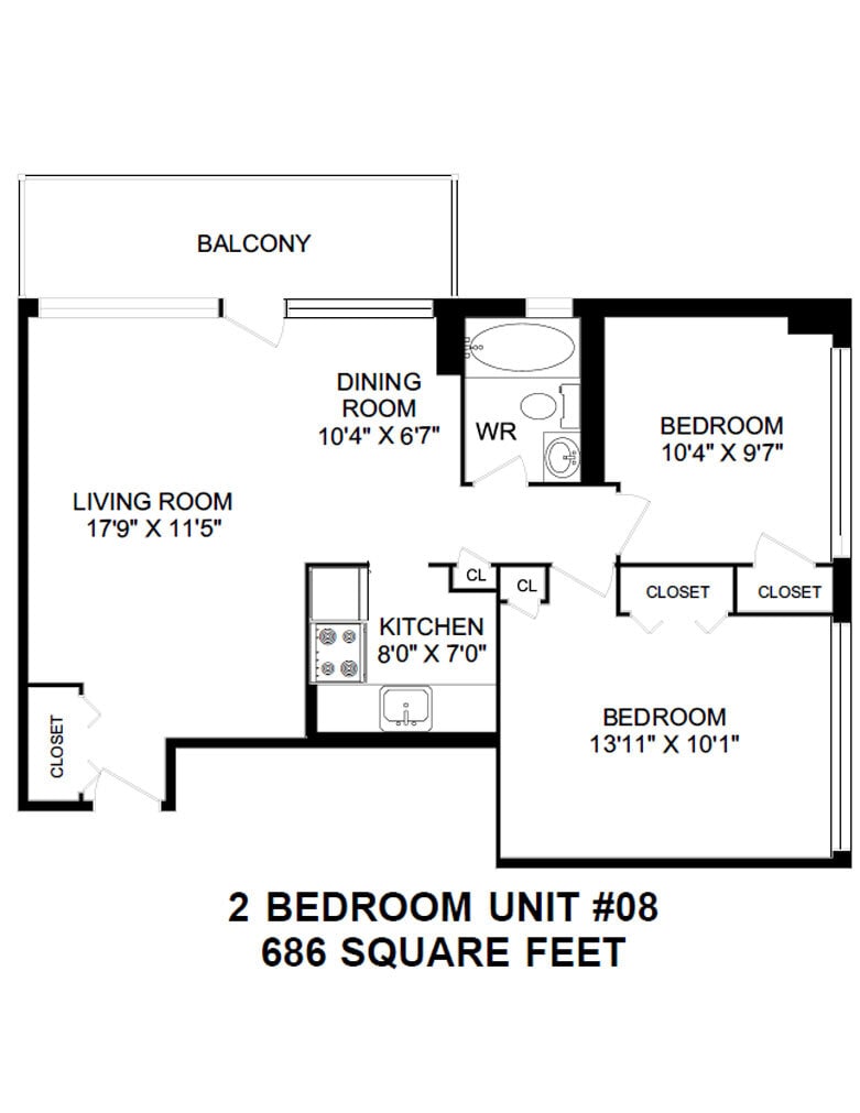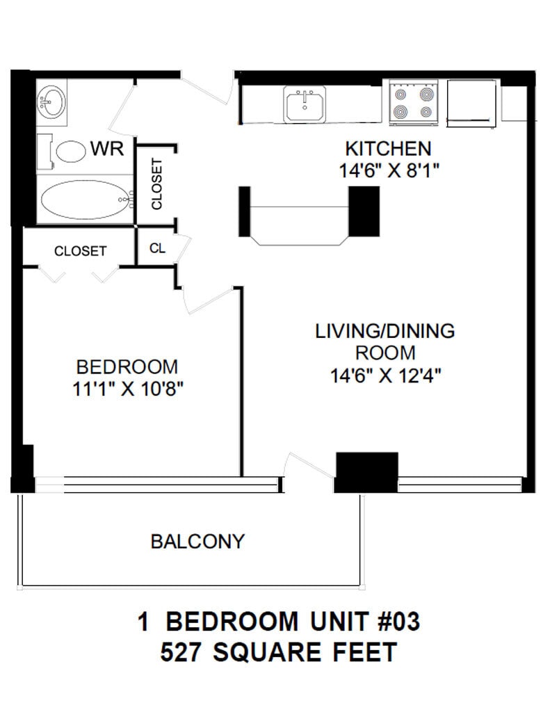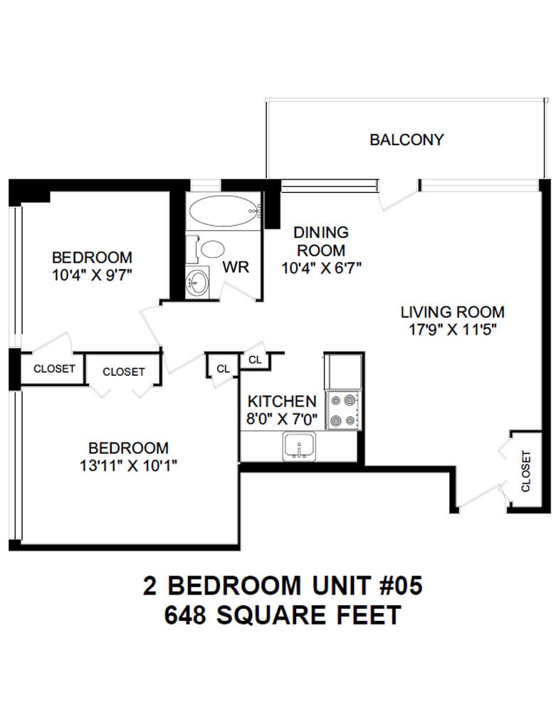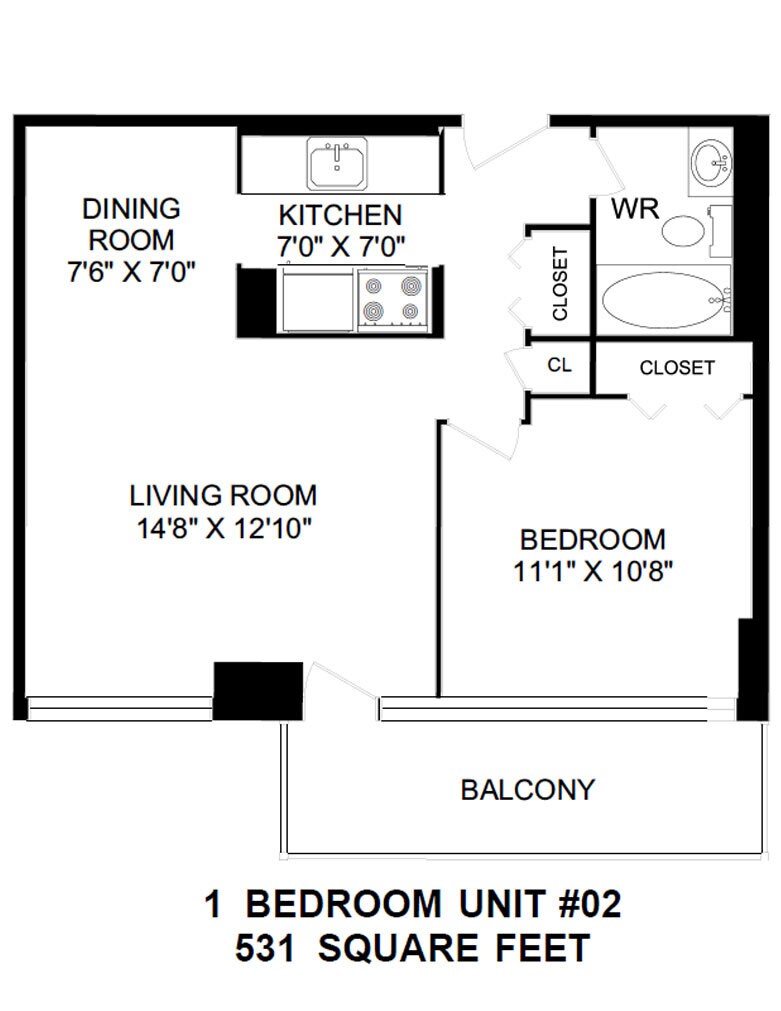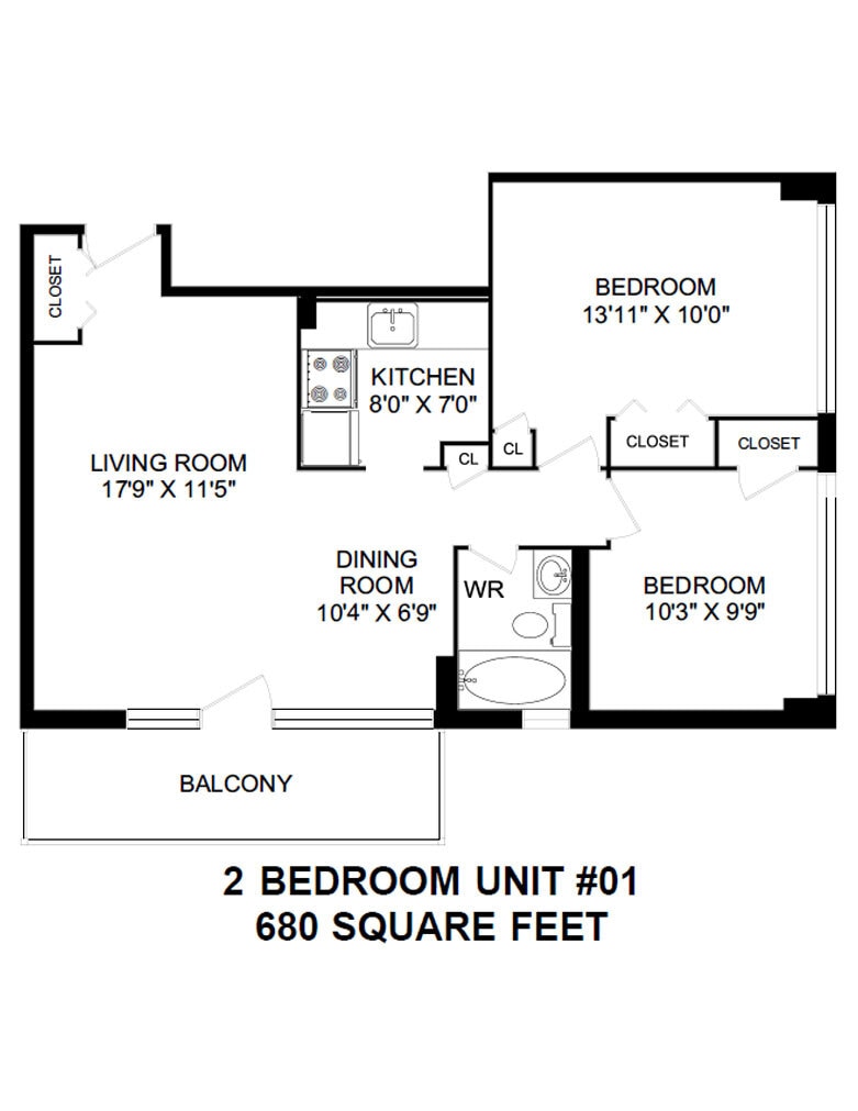 1 Bedroom - Floorplan 3 2 Bedrooms