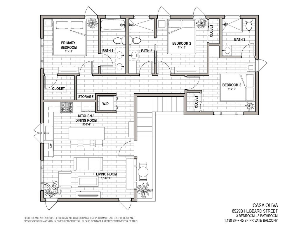 8929 Hubbard St offers 3 Bedroom apartments starting from $6,575 and having 1,200–1,264 sq ft. Here is the current pricing and availability: