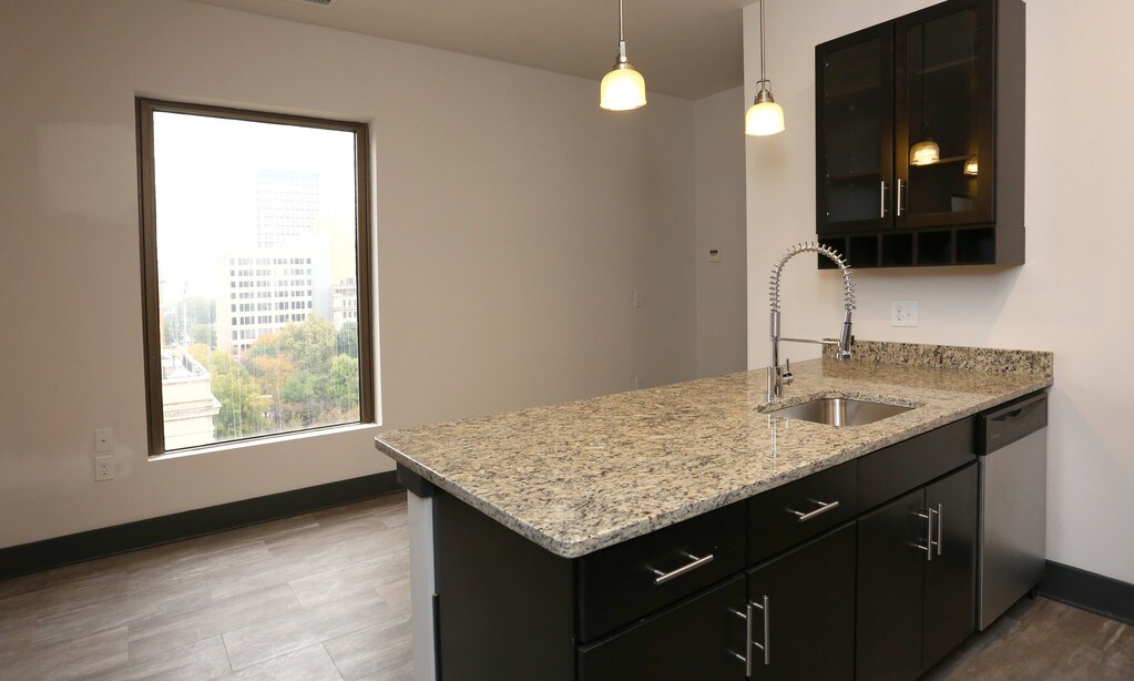 Ideally situated amongst the hustle and bustle of downtown Richmond, VA 8th & Main is right in the heart of the business district and the Virginia State Capitol, popular fine dining options, and plenty of places to enjoy your next night out, like Kabana Rooftop, Hotel Greene, and Casa Del Barco. The James River, Canal Walk, and Brown's Island are a short walk away and offer many outdoor activities for 8th & Main residents. The loft-style apartments come with hardwood and tiled floors, full-sized stacked washer/dryers, and gorgeous kitchens outfitted with stainless steel appliances, built-in microwaves, and granite countertops. Each kitchen also features a breakfast bar which opens up to the spacious living area - making it the perfect setup for entertaining. Many apartment views overlook the gorgeous Capitol Square Park or beautiful Richmond City skyline of high-rises and historic sites. Community amenities include a stunning rooftop pool and terrace space, a massive onsite fitness center, a secure and covered parking deck, and onsite management and maintenance staff. Our apartments are all-inclusive. One price covers your rent, internet, electricity, water/sewer, and trash. The building is also pet-friendly with no weight restrictions and just a one-time pet fee. No monthly pet rent. Contact us to secure your apartment at 8th & Main.