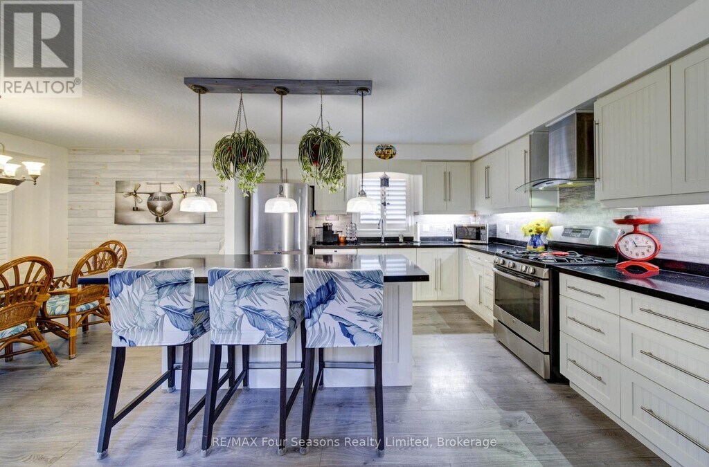 SKI SEASON RENTAL available from Dec 1st to April 1st.One or two dogs may be considered. Beautifully maintained solid brick 3 bedroom home in Georgian Meadows just a few minutes drive from Osler Ski Club and and Blue Mountain Village. Open plan living area with gas fireplace,large dining area,modern kitchen with island bar,gas stove,granite counters and all stainless appliances. Walk out from the dining area to a covered porch area with a gas fire stove and HOT TUB. Great outdoor space for apres ski relaxation. Three good sized bedrooms on the second level all with queen beds. Primary has a 4 piece ensuite and there is another 4 piece bathroom for use of the other two bedrooms. The basement is unfinished however there is a workshop area for ski waxing and a small area set up with a TV. Double car garage for use of tenants plus two parking spots in driveway. Utilities are extra plus a damage deposit and cleaning deposit are required. Rental application is required (id:52069) ID#: 1391131