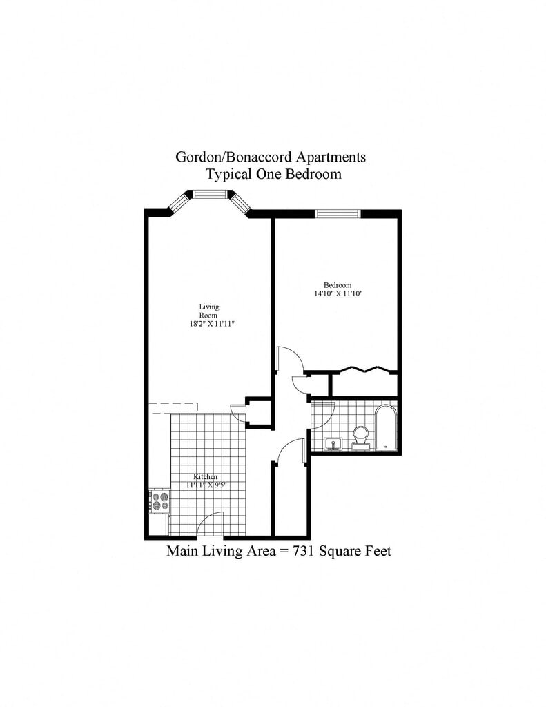One Bedroom - Floorplan 1 Apartment Unit: 306Apartment Model: One Bedroom1 Bedroom, 1 Bath, 731 sq ftAvailable February 1, 20262 Bedrooms