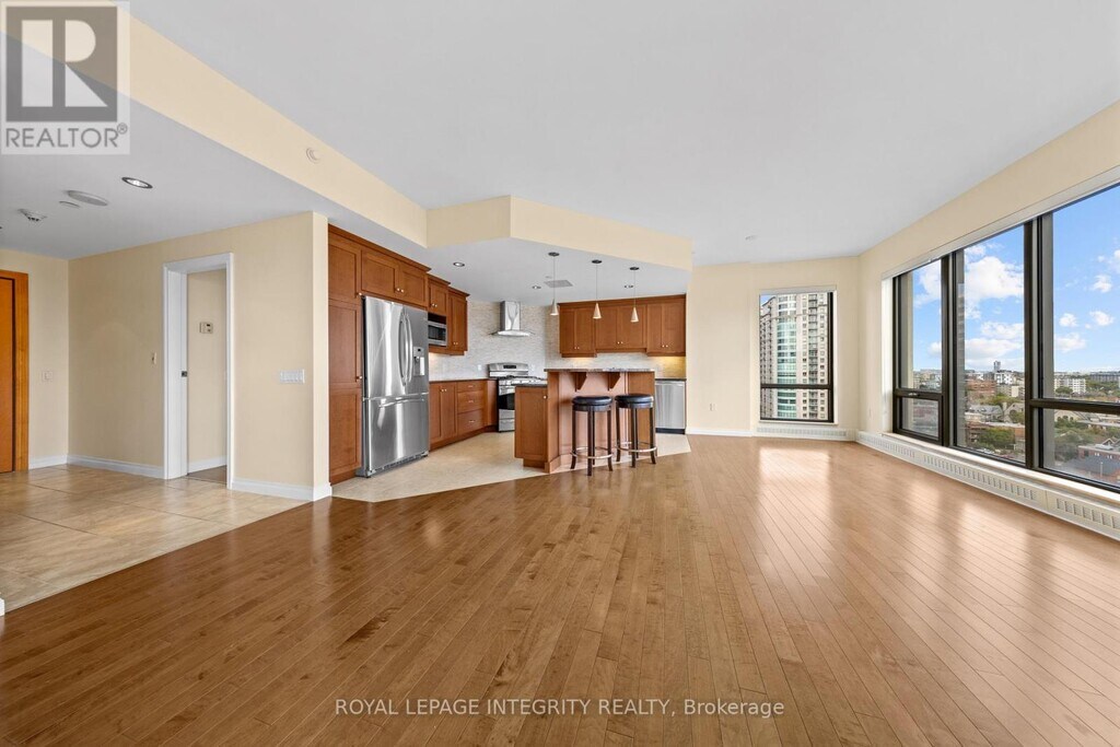 Experience luxury living at one of Ottawa's most prestigious addresses - 90 George in the heart of the ByWard Market. This iconic building is known for exceptional management,five-star amenities,and a community of distinguished residents,including ambassadors and senior government officials. Unit 1207 has also been home to diplomatic and government tenants - a reflection of the calibre and exclusivity of this residence. Spanning 1,285 sq. ft.,this 2-bed,2-bath corner unit balances the comfort of a home with the convenience of condo living. Floor-to-ceiling south-facing windows flood nearly 500 sq. ft. of open living and dining space with natural light,complemented by luxury hardwood floors throughout. The kitchen features granite countertops,a central breakfast island,full stainless-steel appliance set,and a rare gas stove with built-in grill top - an uncommon luxury downtown. A 97 sq. ft. balcony extends the living space outdoors,overlooking Rideau Street and the city core. The primary suite offers a 6-ft deep custom built walk-in closet in high-end wood,along with a spa-like ensuite with oversized soaking tub and sleek glass shower. The secondary bedroom is spacious and bright,beside a modern 3-piece bathroom with glass shower. In-suite laundry is neatly tucked away for convenience. Residents here enjoy an unmatched lifestyle: a 900 sq. ft. outdoor terrace with sweeping Parliament and ByWard Market views,saltwater swimming pool,indoor hot tub,saunas with changing rooms and showers,plus a bright,fully equipped fitness room overlooking the terrace. This residence includes one underground parking space and a private locker on the same level - a true downtown convenience. With 24/7 concierge and security,every detail is designed for comfort,exclusivity,and peace of mind. This is more than a home - it is a lifestyle at the top tier of Ottawa living. Reach out to Veronika today for a private showing: or . (id:52069) ID#: 2240643